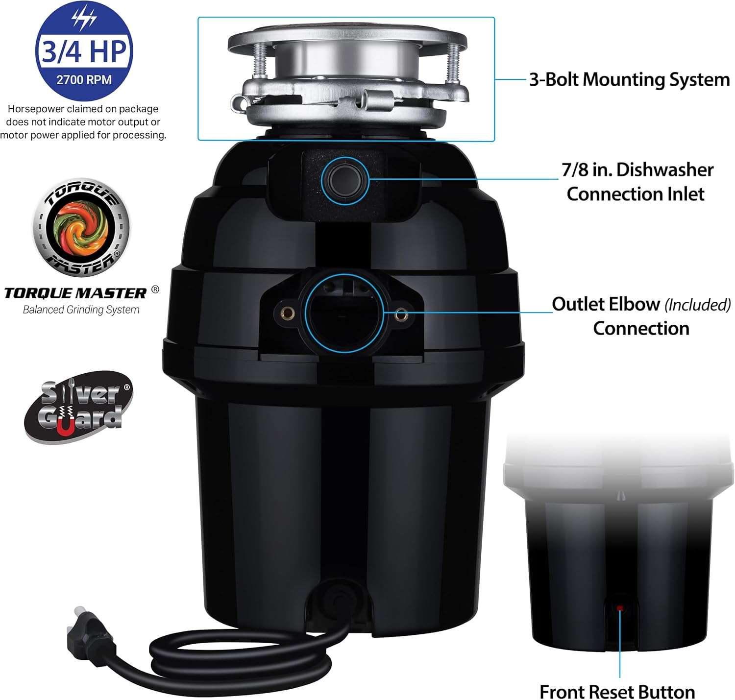 - TORQUE MASTER GRINDING SYSTEM: Anti-jam Torque Master stainless steel grinding system delivers maximum torque for cutting through waste and a durable turntable with balanced impellers for less vibration, quieter operation, and longer life