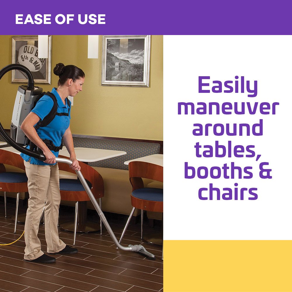 - Easy Operation - Backpack vacuums fits closely to the body to avoid contact with walls and furniture; the extra-long 50-foot power cord makes cleaning large areas easy
