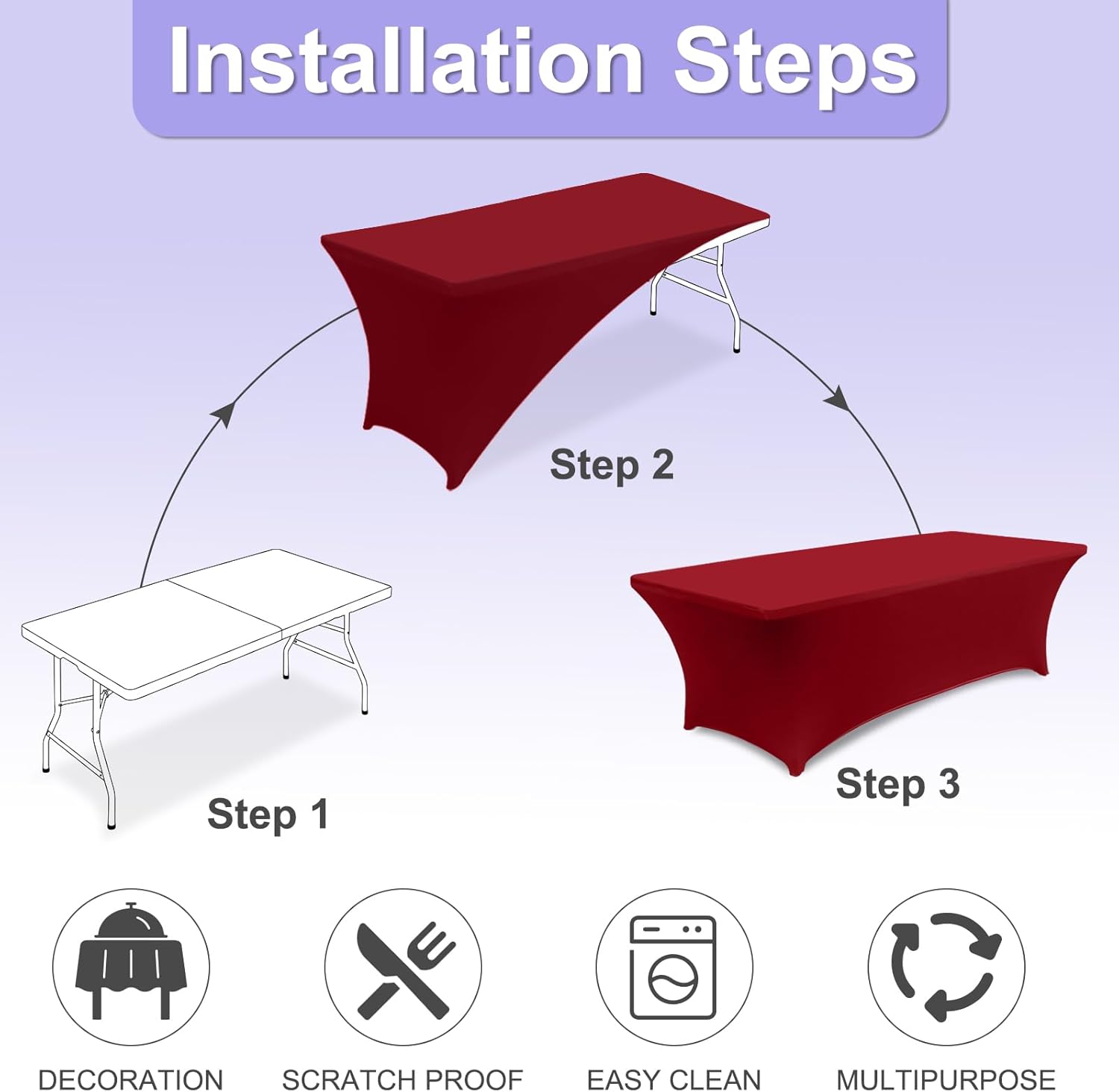 ABCCANOPY 6 FT Red Spandex Table Cover Stretch Fitted Wrinkle Resistant Tablecloth Reuse for Rectangular Folding Table Patry Event Wedding Banquet Protector