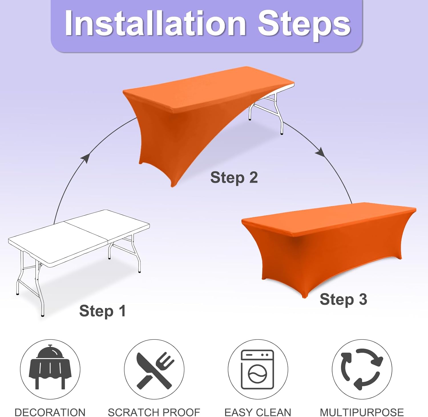 - 2.Why This Cover?: This table cover made from 90% high-quality polyester and 10% spandex material. So that it is Durable, Long-Lasting, Wrinkle-Resistant. The strong elastic hem ensures a tight grip on your table, preventing slipping or sliding, even during active use. Itās built to last through many times washes and uses. Whether itās a family dinner, wedding, birthday party, holiday celebration, or outdoor picnic, this tablecloth adds a touch of elegance to any setting.