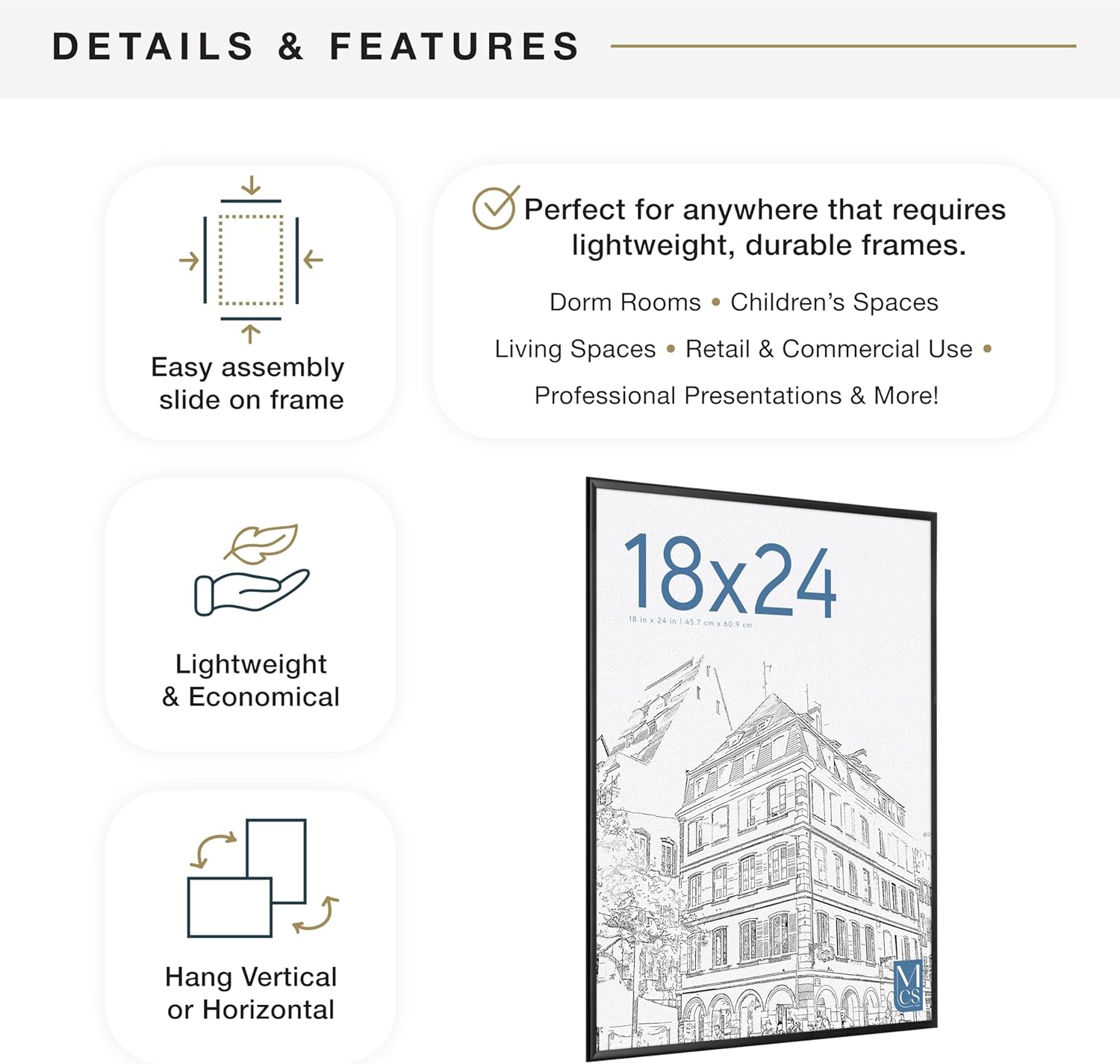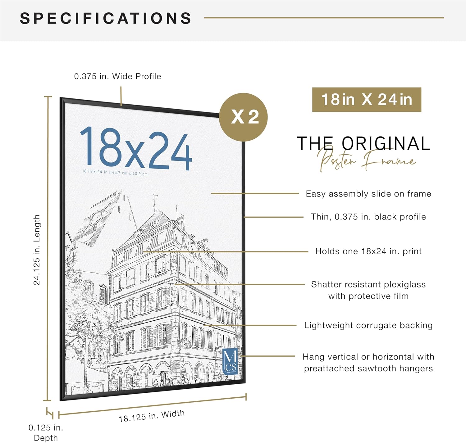 - WALL DECOR: With a passion for design, trend and functionality, MCS delivers best-in-class products that help make your house a home; Use the Original Hanging Poster Frame to create a gallery wall or add a focal point to any room