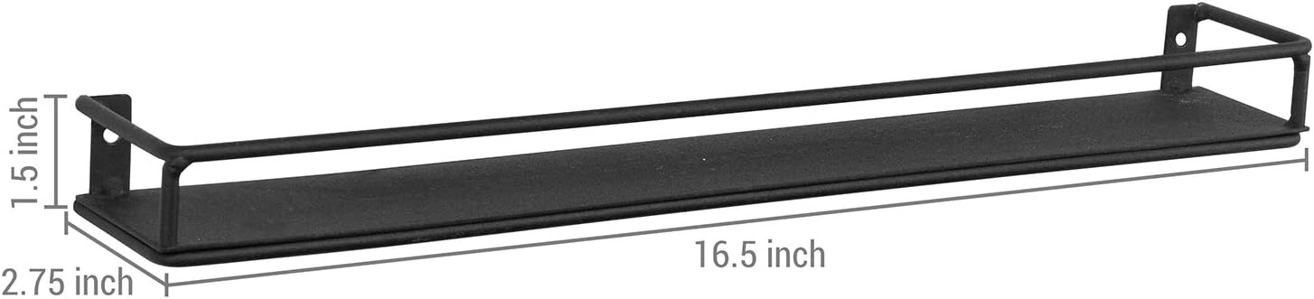 MyGift Set of 3 Wall-Mounted Black Metal Nail Polish and Essential Oils Display Shelves, Kitchen Spice Jars Rack