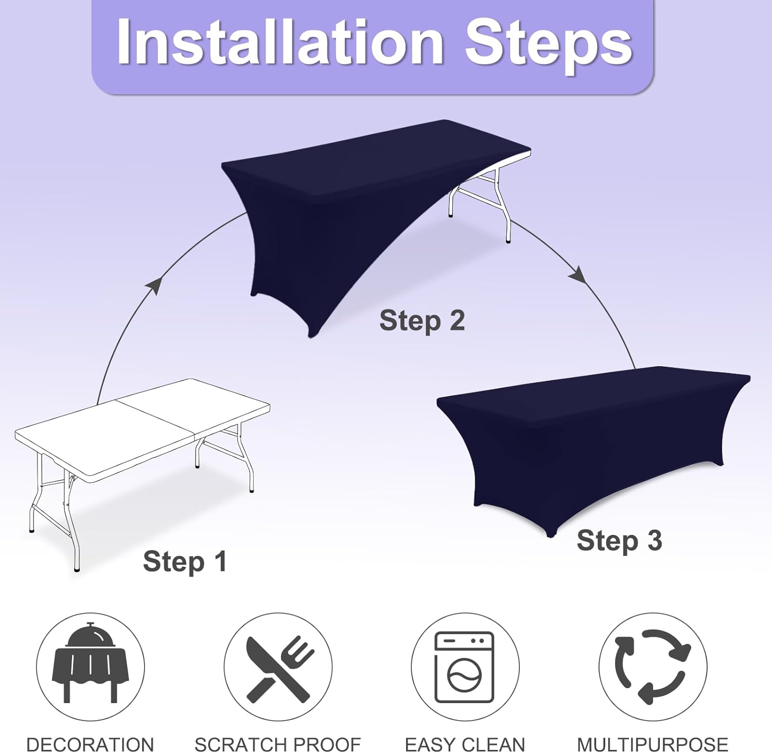 - 2.Why This Cover?: This table cover made from 90% high-quality polyester and 10% spandex material. So that it is Durable, Long-Lasting, Wrinkle-Resistant. The strong elastic hem ensures a tight grip on your table, preventing slipping or sliding, even during active use. Itās built to last through many times washes and uses. Whether itās a family dinner, wedding, birthday party, holiday celebration, or outdoor picnic, this tablecloth adds a touch of elegance to any setting.