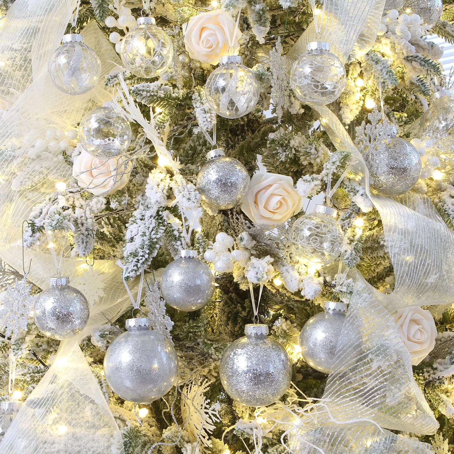 - EASY-TO-CLEAN CHRISTMAS ORNAMENTS - To avoid glitter coming off, we adopted an innovative craftsmanship. With the craftsmanship, all of decorations will be stuffed in the clear ball ornament and glitter will be glued on the ball's inner surface so that you can wipe clean the ornament easily and free from cleaning the glitter in your house.