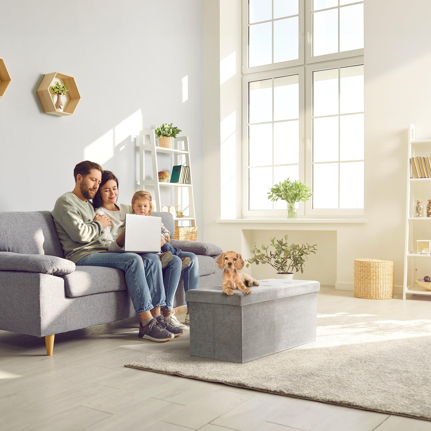Sorbus Storage Ottoman Bench – Collapsible/Folding Bench Chest with Cover – Perfect Toy and Shoe Chest, Hope Chest, Pouffe Ottoman, Seat, Foot Rest, – Contemporary Faux Suede (Gray)
