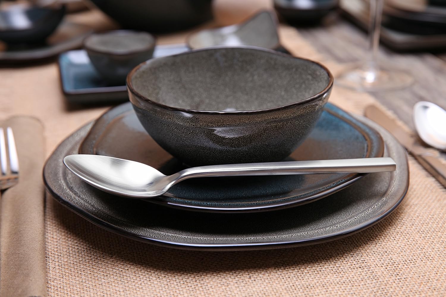 - Brushed stainless steel: The Arezzo set with knife, fork, spoon, dessert fork, and teaspoon in brushed tones adds elegant charm to make every gathering memorable