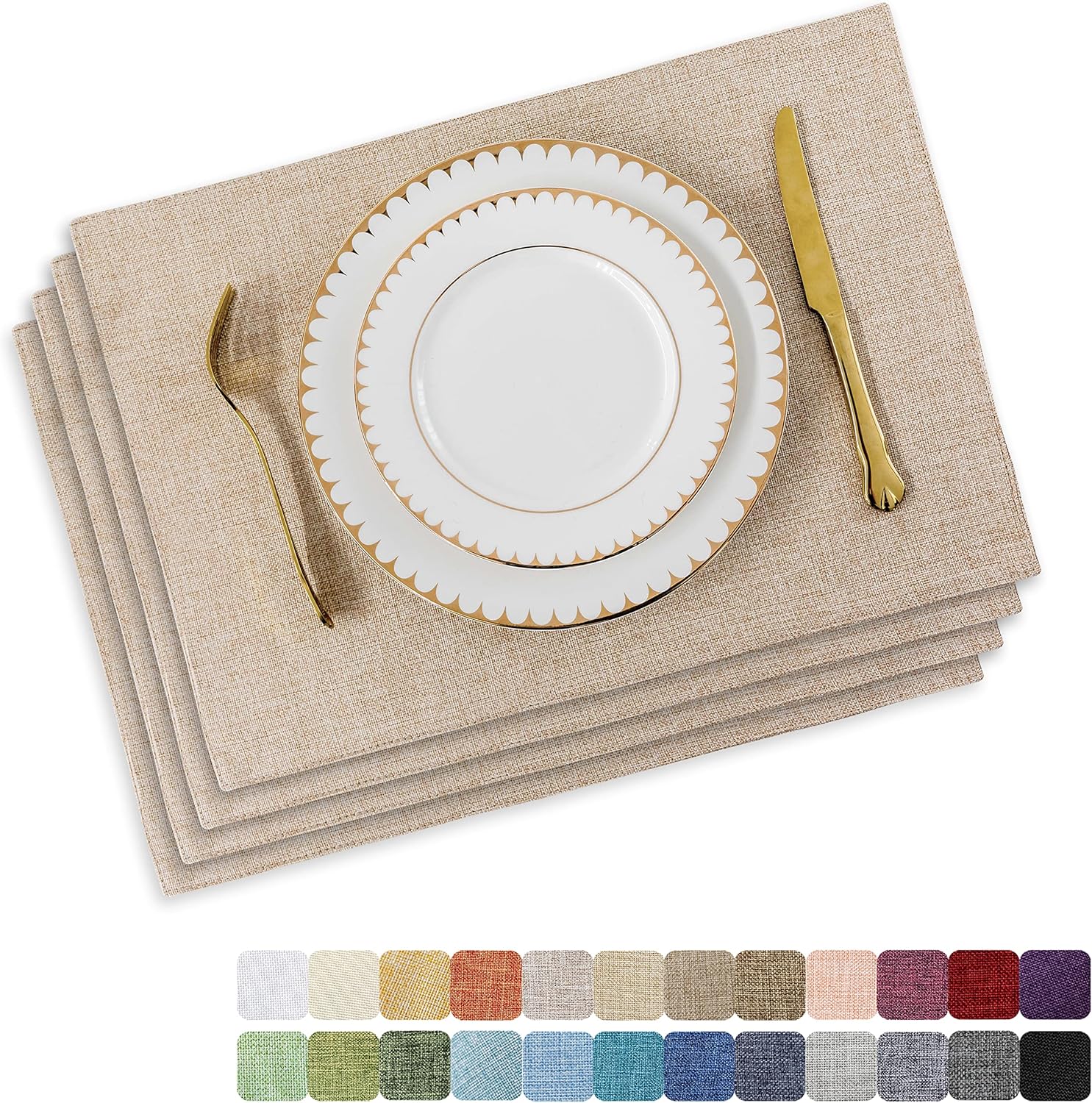 Home Brilliant Placemats Set of 4 Heat Resistant Dining Table Place Mats Plate Mat Cloth Placemats Spring Kitchen Table Mats Indoor Outdoor Dinner, Light Linen