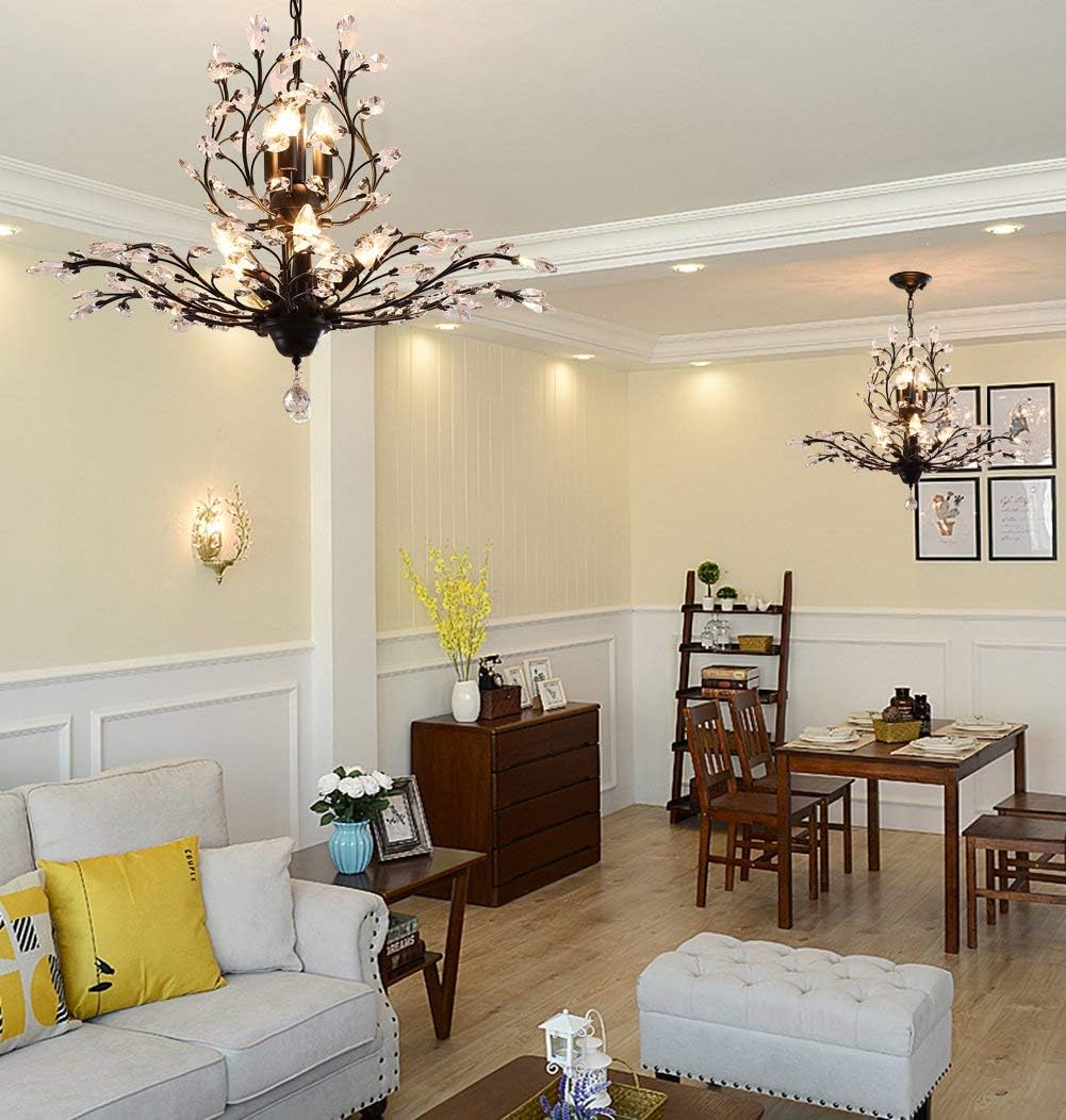 - ARTIST DESIGN: This vintage & modern crystal chandelier is beautifully decorated. Use transparent glass crystals to capture and reflect the light of the bulb. This chandelier light fixture can create a perfect atmosphere wherever it is placed! Push button switch, Paint Process, Stable performance, Long service life.