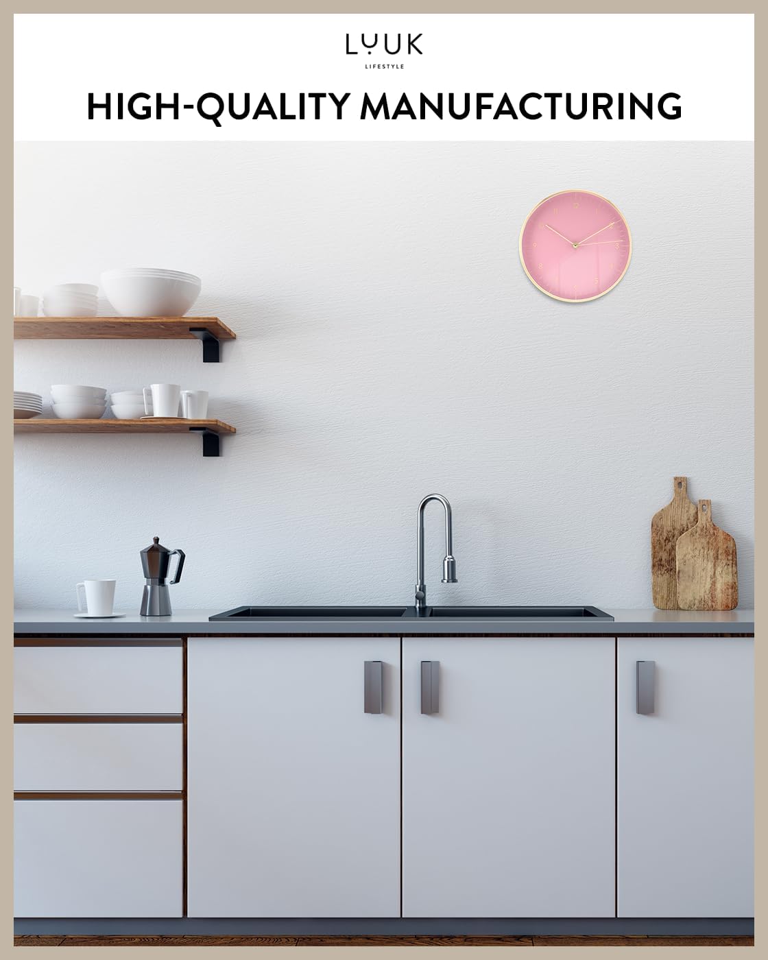 LUUK LIFESTYLE Elegant Wall Clock with Silent Movement, Modern and Minimalist Design, Gift idea for Moving-in, Decoration, in Pink and Gold