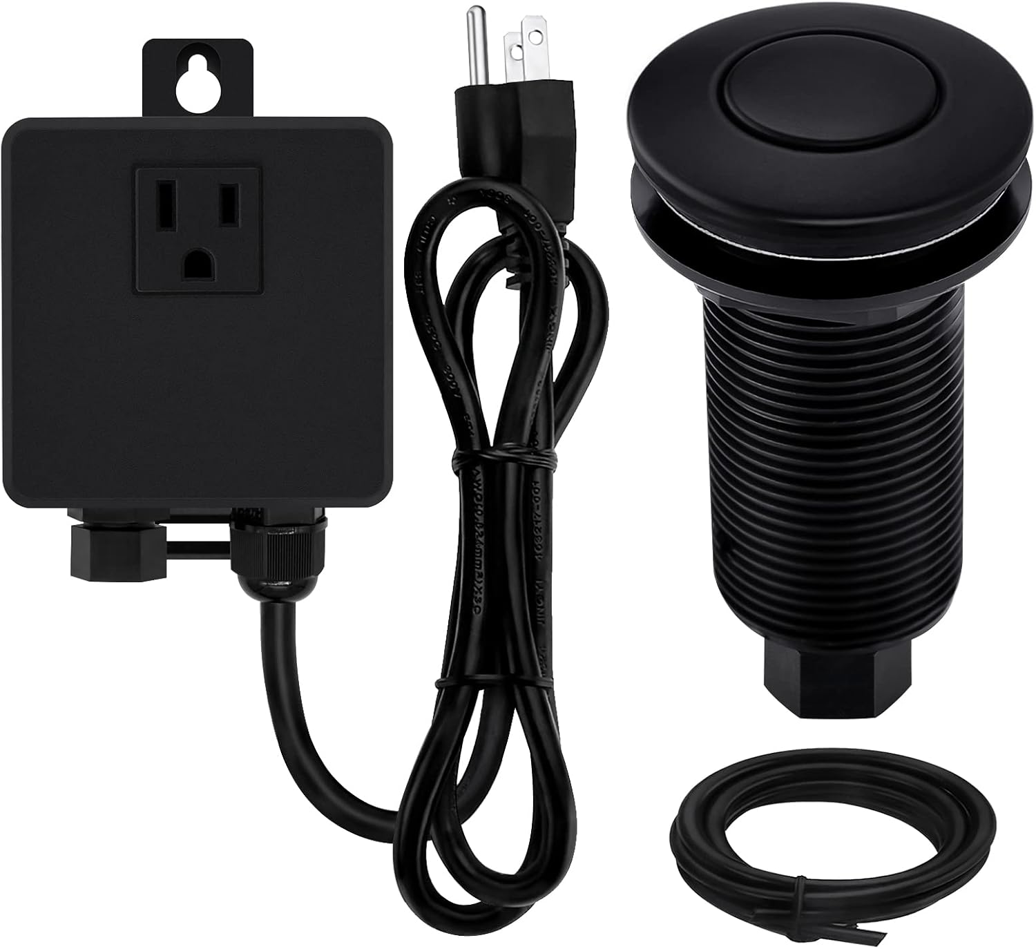 Garbage Disposal SinkTop Air Switch Kit with Long Button,Brass Made Cover,UL,Matte Black