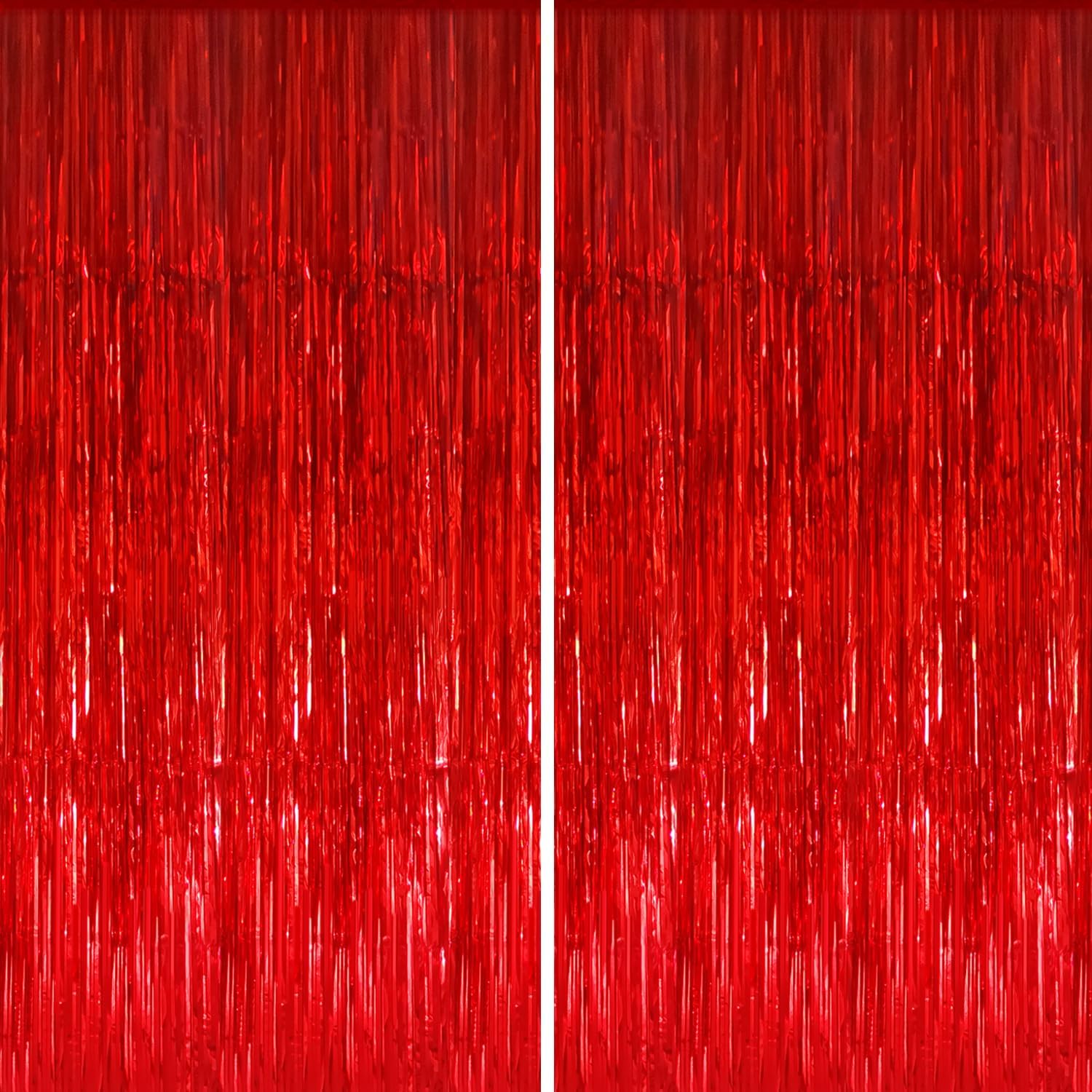 - Package Includes:2 pack red foil fringe curtains,3.2 ft x 8.2 ft each,suitable for hanging on a door or coverage a wall fully