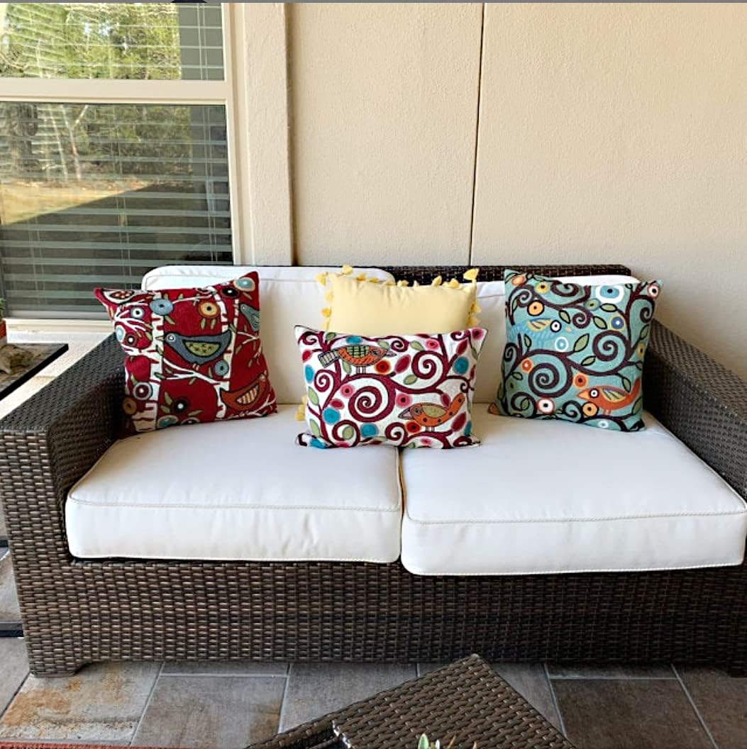 - ❤ REFRESH YOUR HOME OR OFFICE DECOR: These unique abstract Lumbar Birds Tree of Life Ivory Accent throw pillow covers would bring together the artistic elements of any room, creating a harmonious design and perfect air of sophistication. Pillow Cover Size: 14" x 20". Pillow Cover is not Reversible, Backing: Canvas (See additional Pictures). The whole front of this contemporary pillow cover is covered with hand embroidery.