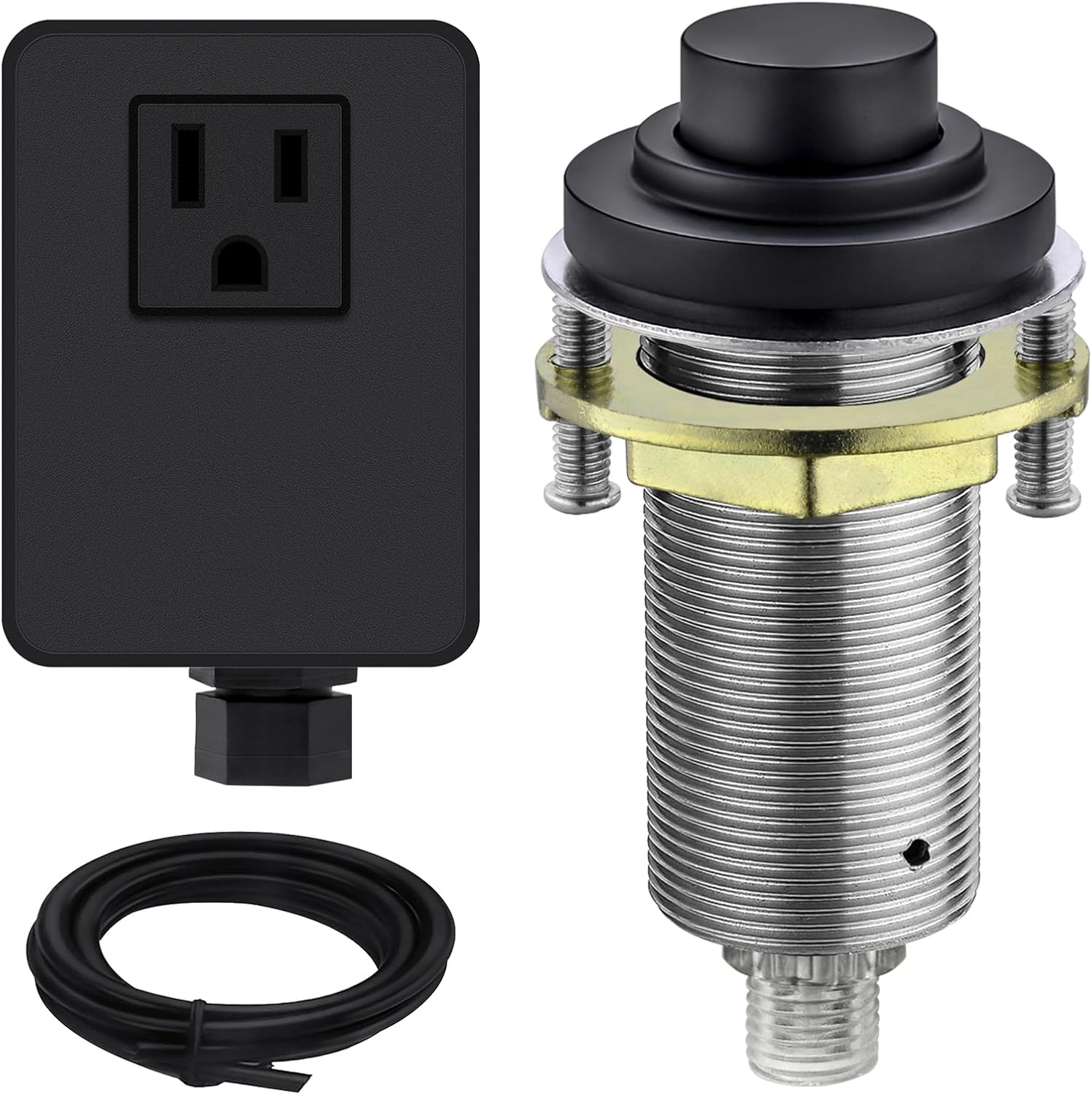 SinkTop Air Switch Kit (Long Full Brass Button) for Garbage Disposal, Cordless Matte Black