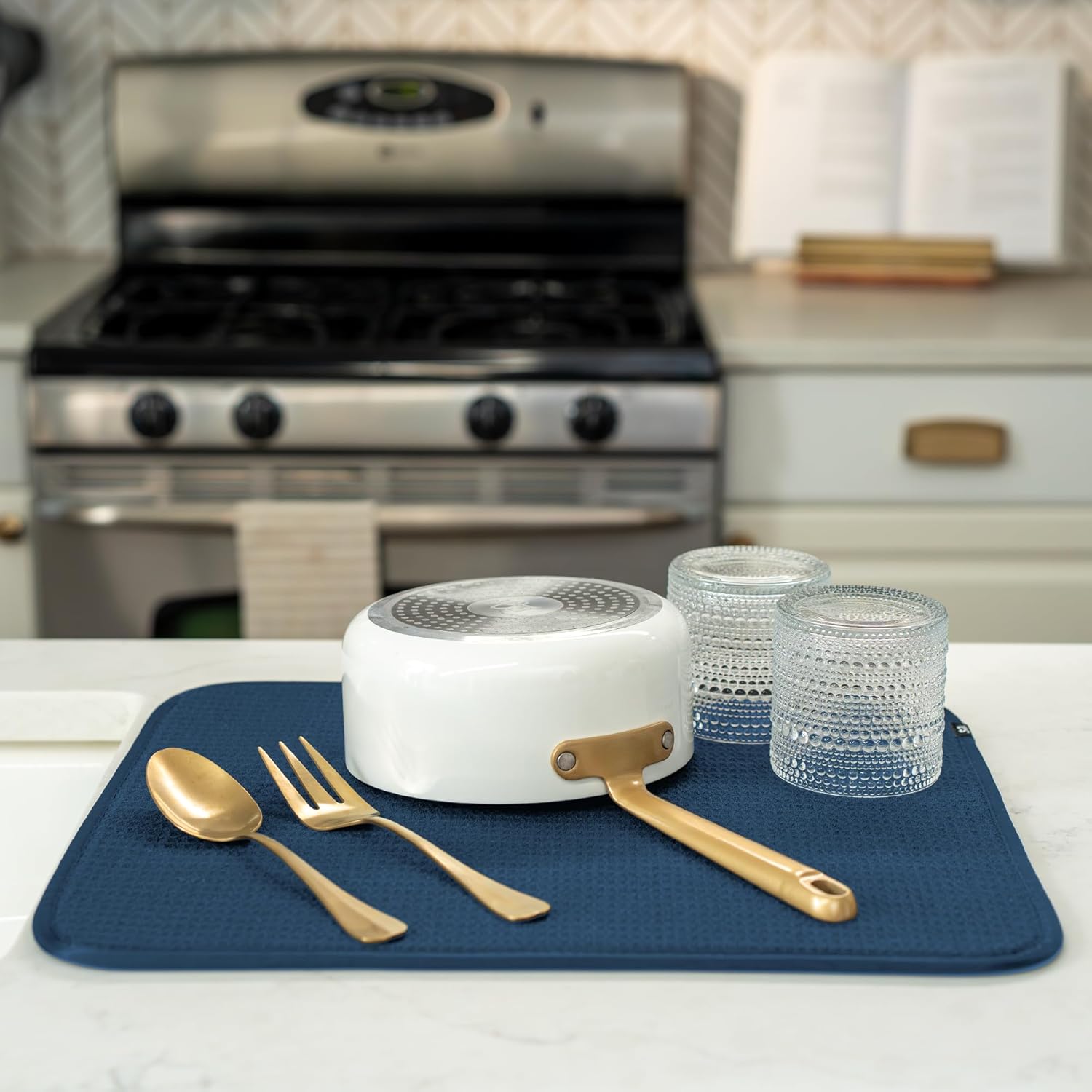 - Dish drying mats for kitchen counter are reusable, machine washable, and easy to store for kitchen organization; durable construction will not chip or break like a stone dish drying mat for kitchen