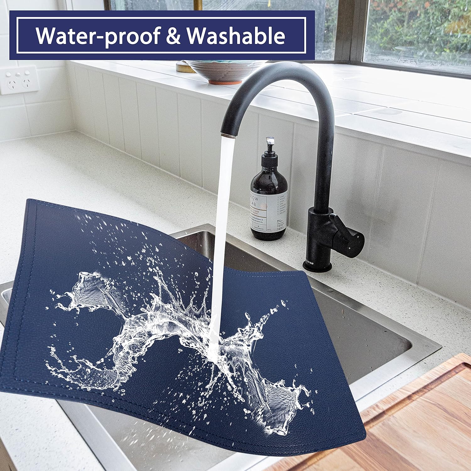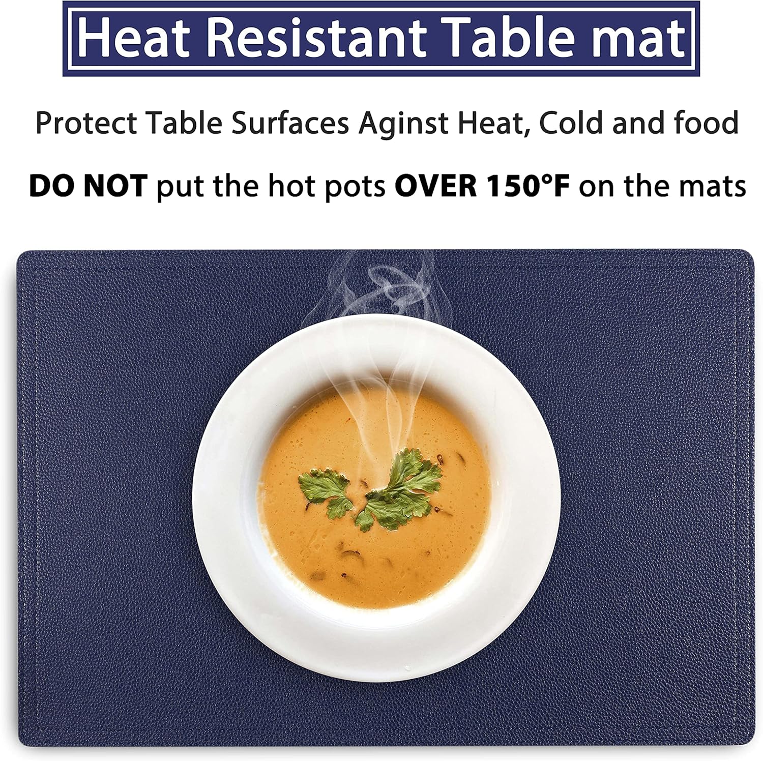 Faux Leather Placemats, PU Table Mats, Set of 4, Waterproof, Stain Resistant, Heat Resistant, Non-Slip Easy to Clean for Kitchen Dining Table,Conference Table C Blue Rectangle
