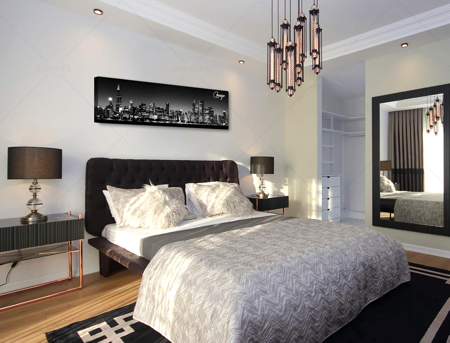 - Black and White Wall Art: skyline pictures for bedroom, black art theme room decor is very suitable for gray, yellow, blue, brown, silver, gold, or bohemian style walls. Applicable place:Bedroom wall decor, kitchen wall decor, wall decorations for living room, bathroom wall decor, rustic wall decor, family wall decor, office wall decor, black wall decor, dining room wall decor, modern wall decor, blue wall decor, inspirational wall art. American city skyline series wall art decoration paintings.