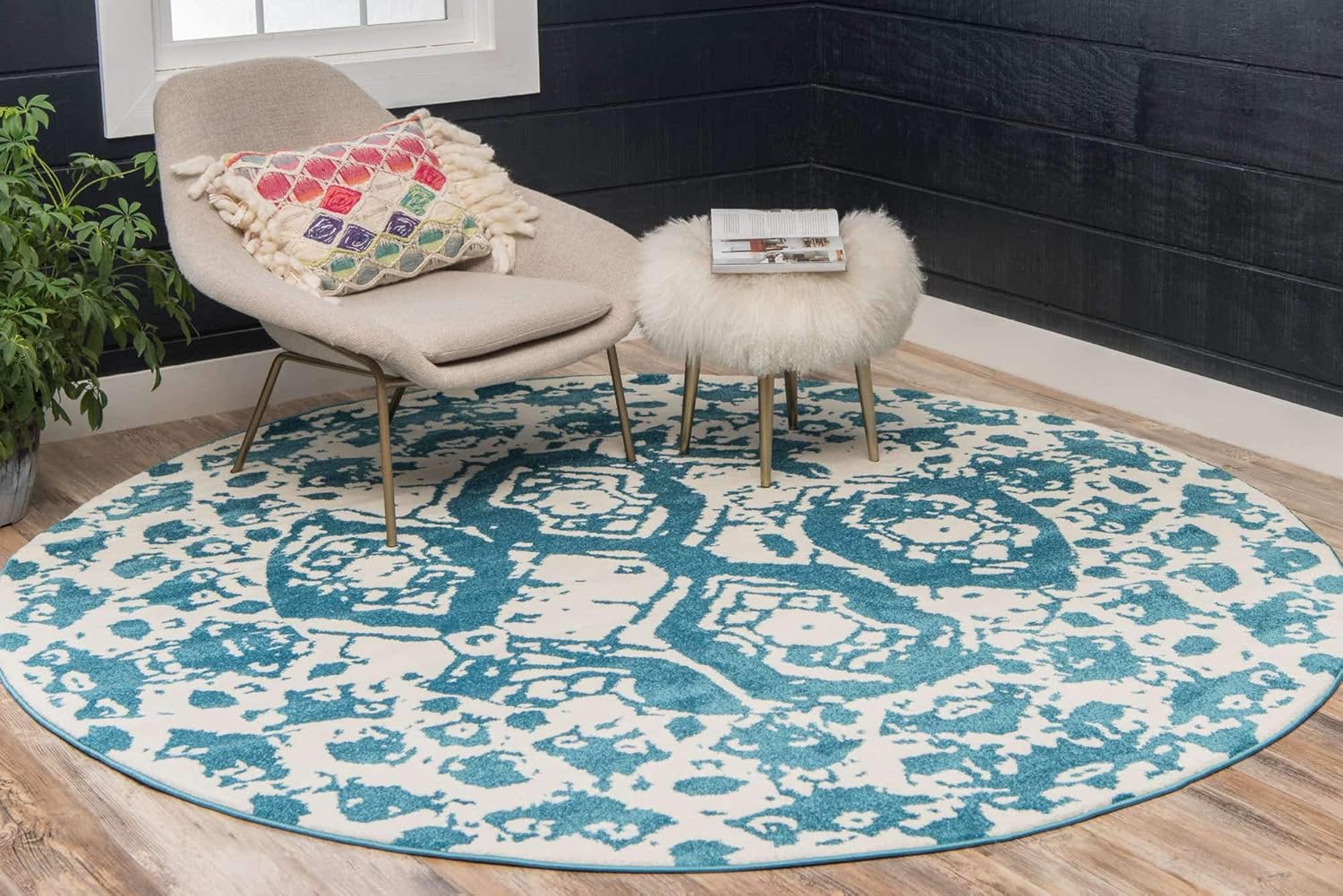 Unique Loom Rosso Collection Vintage Traditional Distressed Blue Round Rug (3' 3 x 3' 3)