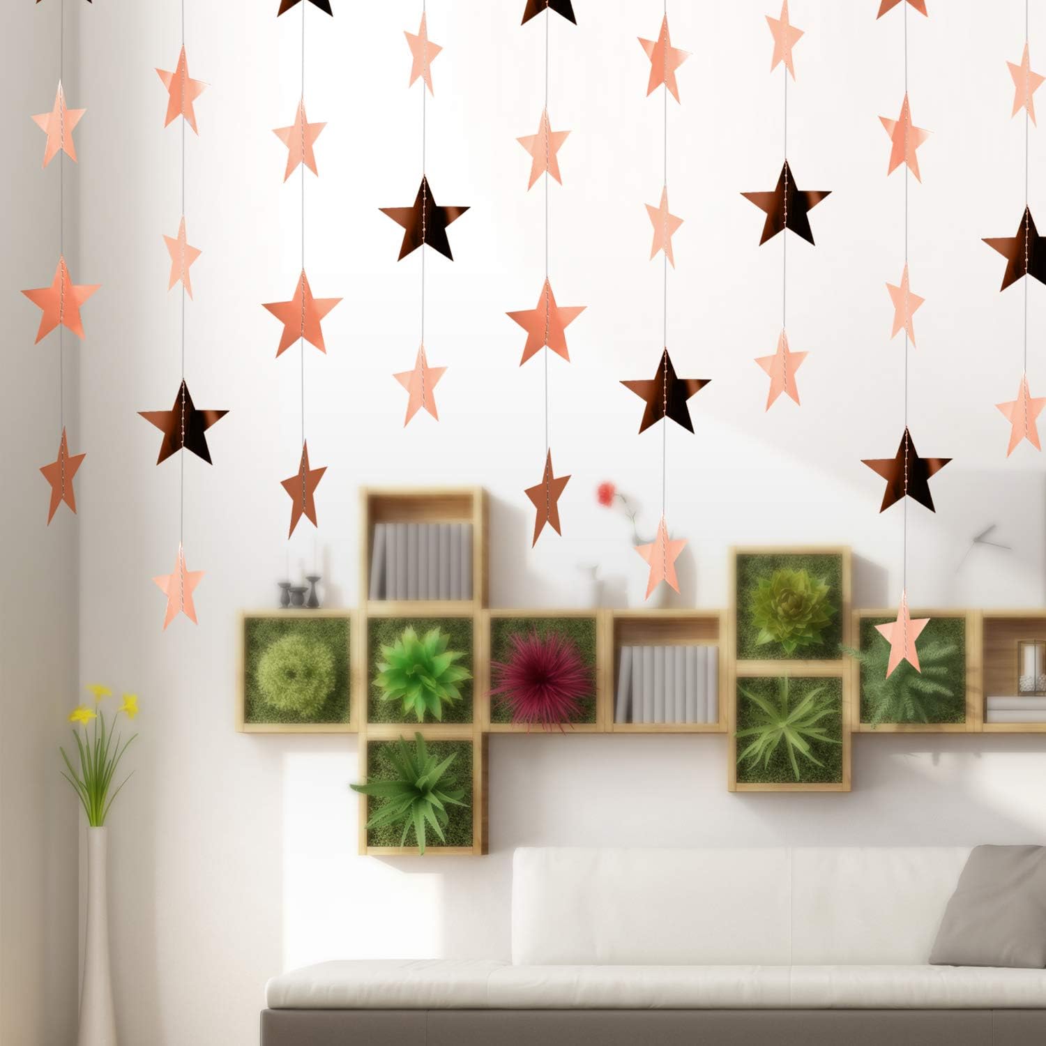 Patelai Glitter Star Garland Banner Decor 130 Feet Star Hanging Bunting Banner Twinkle Backdrop for Homecoming Classroom Wedding Birthday Halloween Christmas Party Supplies(Rose Gold)