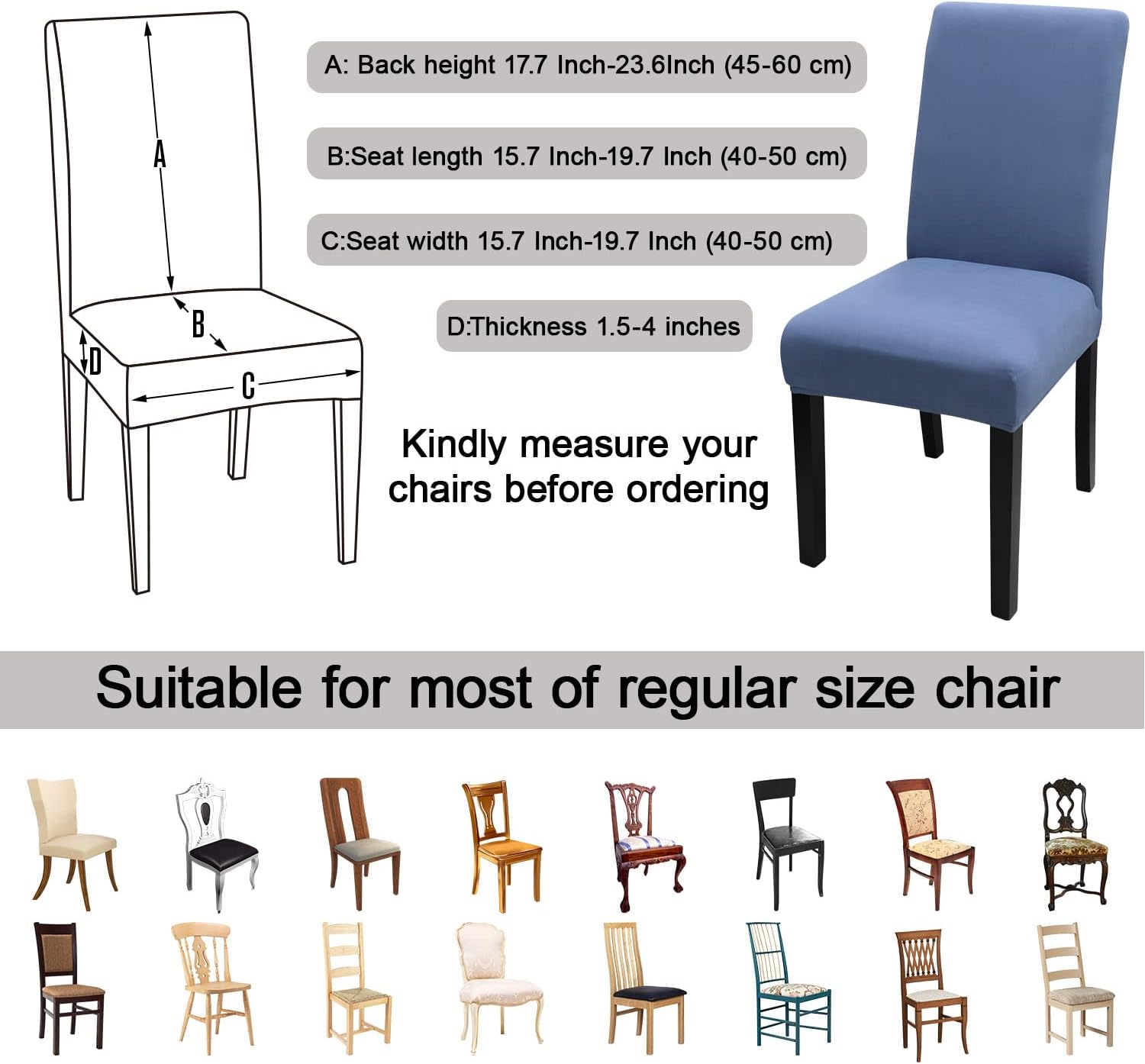 - 【High Quality of Chair Cover】- This dining chair slipcovers are made of stretchy Polyester fiber and spandex , soft, comfortable and wrinkle resistant, no ironing required; Stretchable Material, stretch that recovers quickly, secure fit with sewn-in elastic hem.
