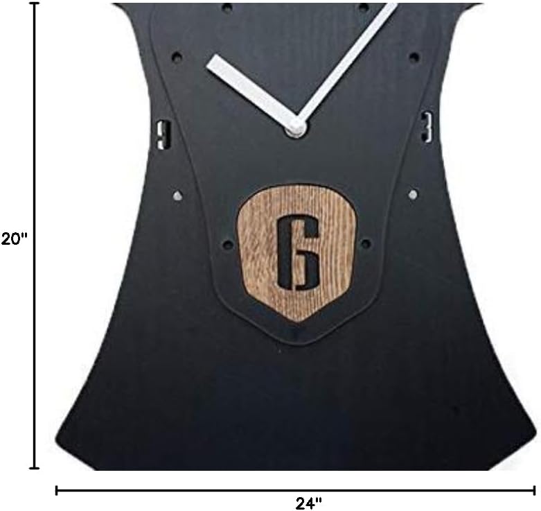 - This large clock is in the shape of a reindeer and measures 20āX 24ā and features a black Pinewood MDF ecoboard dial that is 0.15ā thick. The clock hands are made of silver aluminum. Operates with 1 AA battery which is not included.