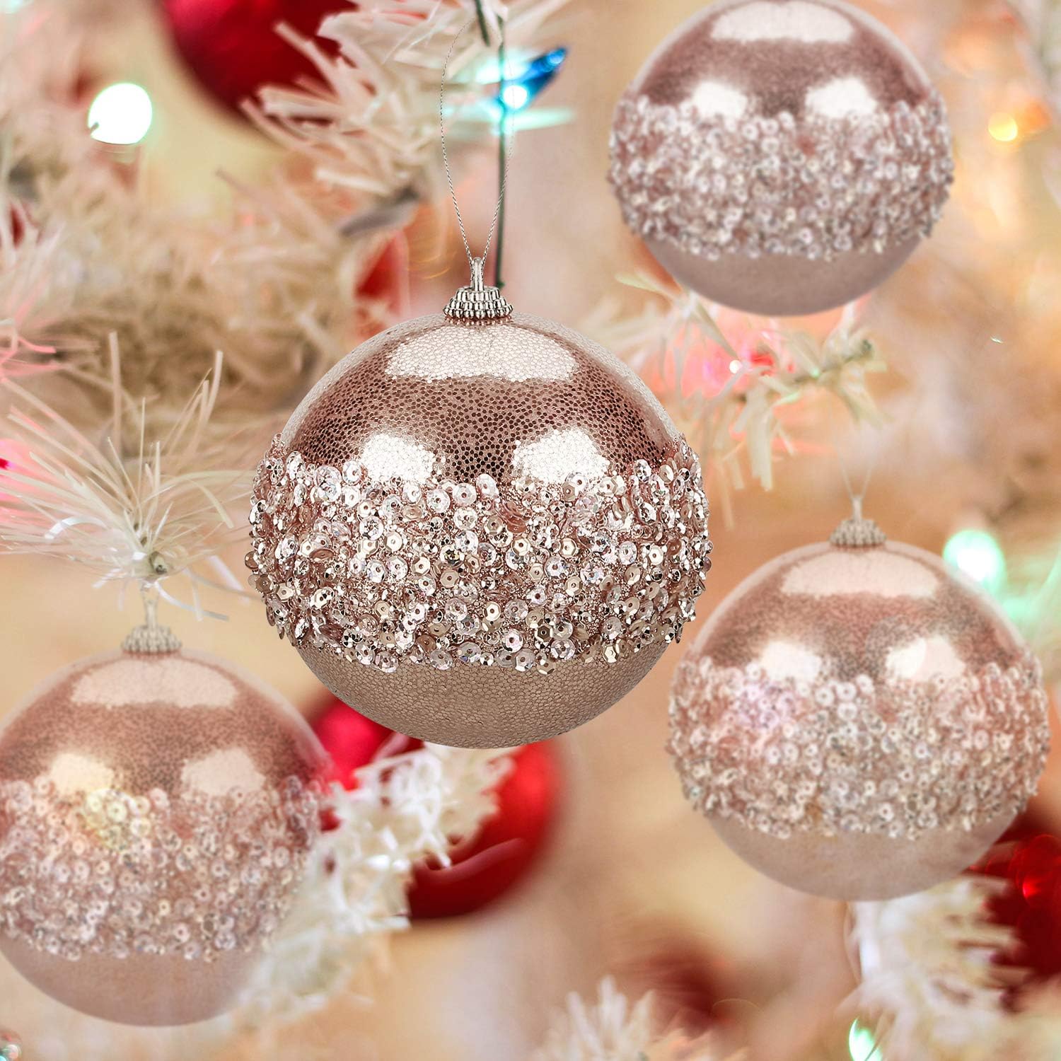 4" Christmas Ball Ornaments, 4pc Set Rose Gold Shatterproof Christmas Decorations Tree Balls for Xmas Trees Wedding Party Holiday Decorations