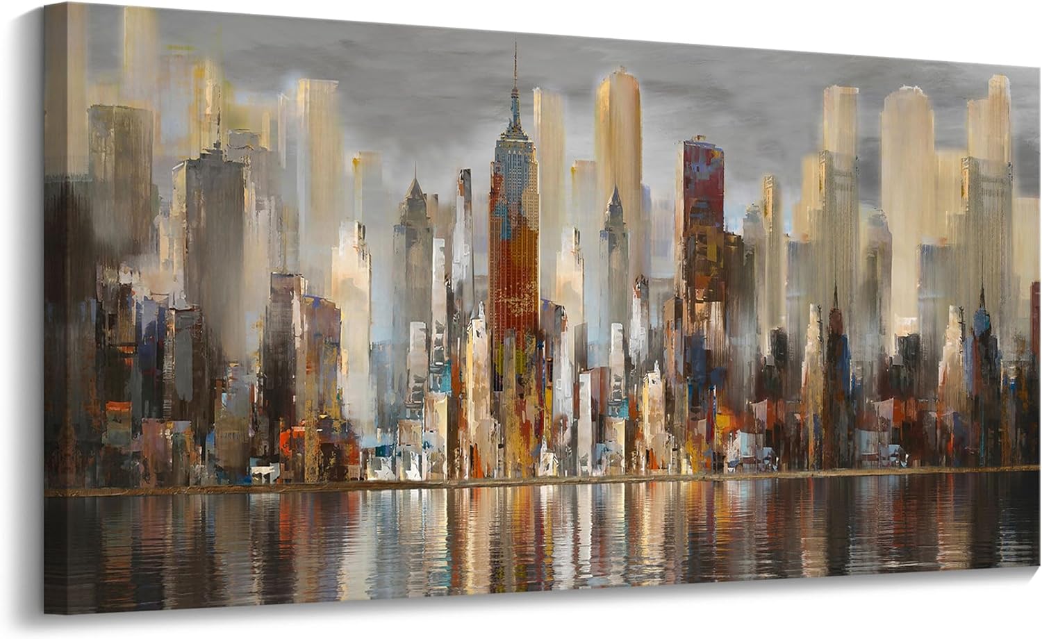 Framed Wall Art Large Cityscape New York Wall Decor Canvas Prints Abstract Brown City Theme Paintings Modern Canvas Wall Art for Living Room Bedroom Big Size 24x48 Framed