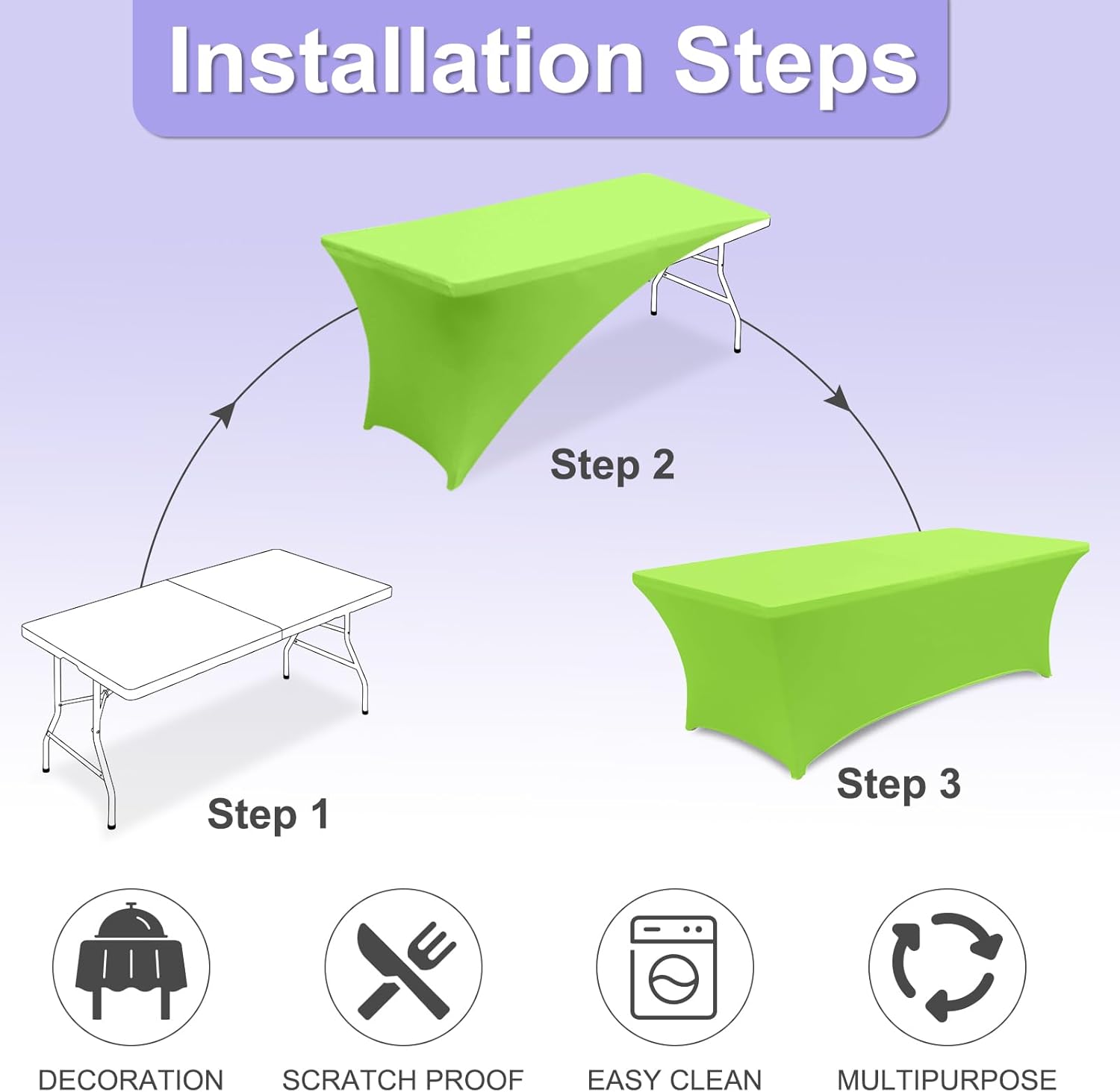 - 2.Why This Cover?: This table cover made from 90% high-quality polyester and 10% spandex material. So that it is Durable, Long-Lasting, Wrinkle-Resistant. The strong elastic hem ensures a tight grip on your table, preventing slipping or sliding, even during active use. Itās built to last through many times washes and uses. Whether itās a family dinner, wedding, birthday party, holiday celebration, or outdoor picnic, this tablecloth adds a touch of elegance to any setting.