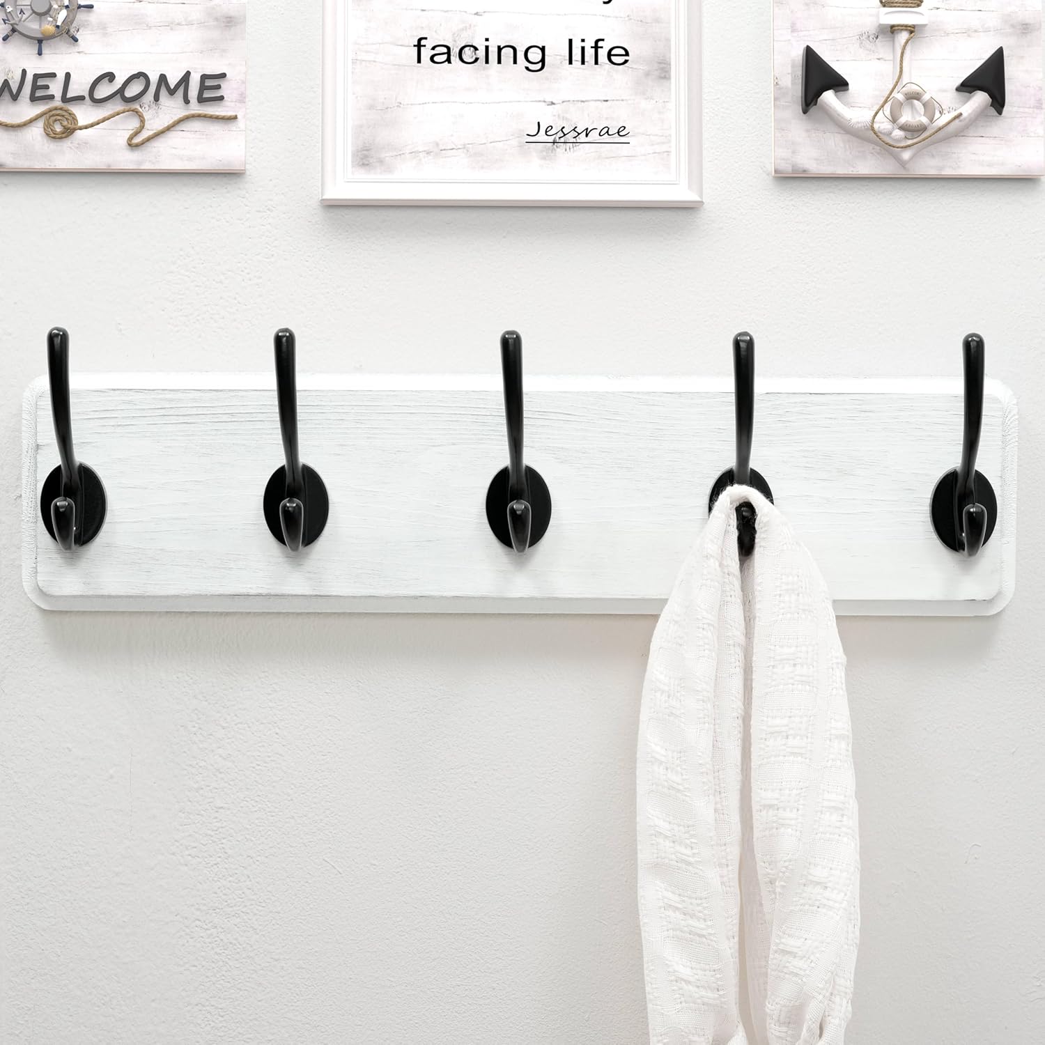 - Size: 17-3/8 x 5-1/4 x 2-3/4 IN; including 1 x wooden hook rail wall mount, upgraded hardware, user manual; color: white and black.