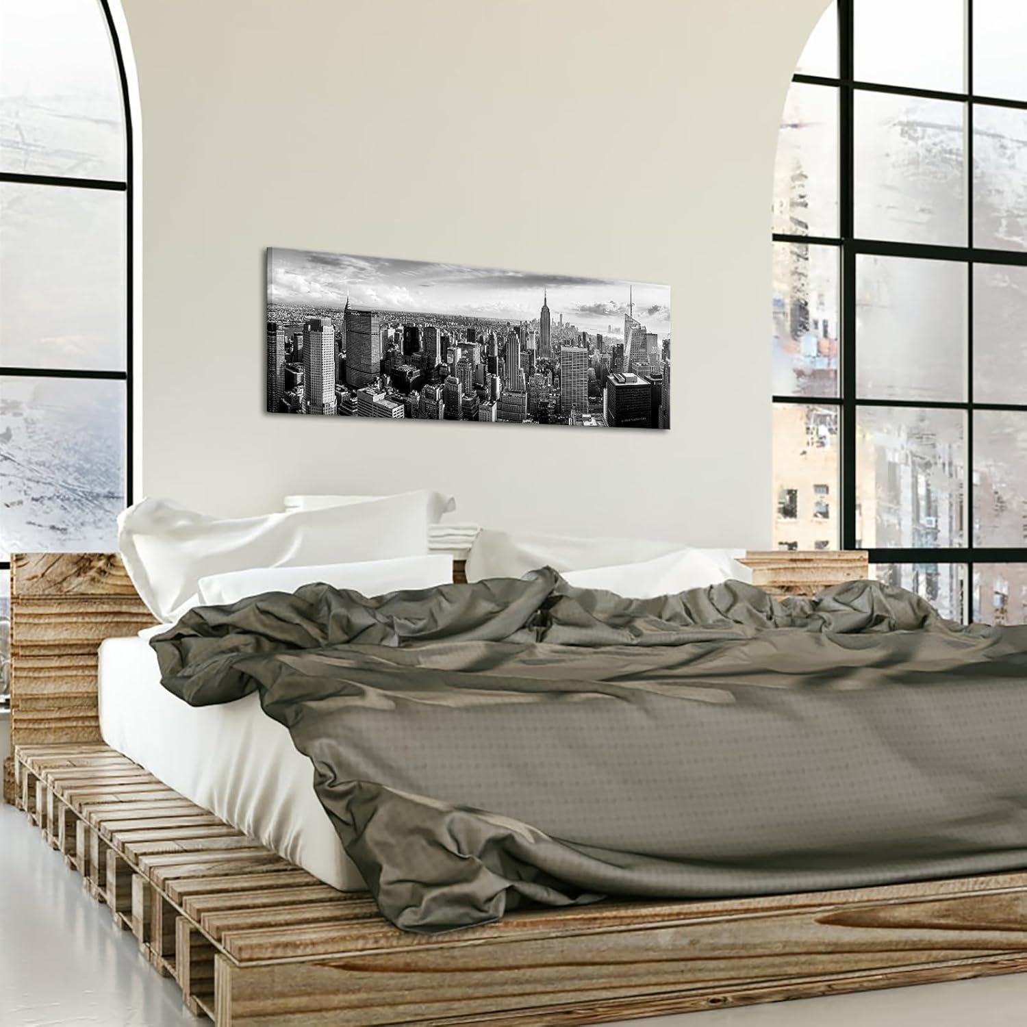 LevvArts New York Canvas Wall Art Black and White City Skyline Picture Panoramic Photo Canvas Print Modern Home Office Living Room Wall Decoration Ready to Hang 20"x55"