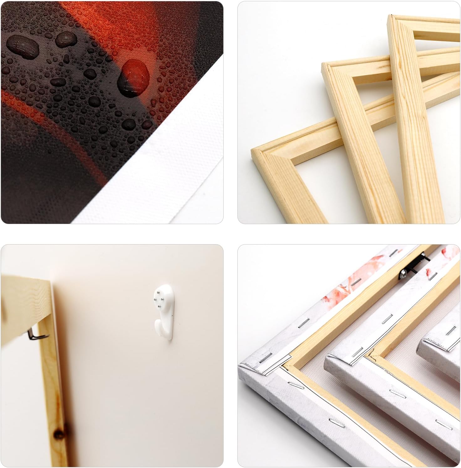 - Each panel canvas art has a black hook already mounted on the wooden bar ready to hang out of box