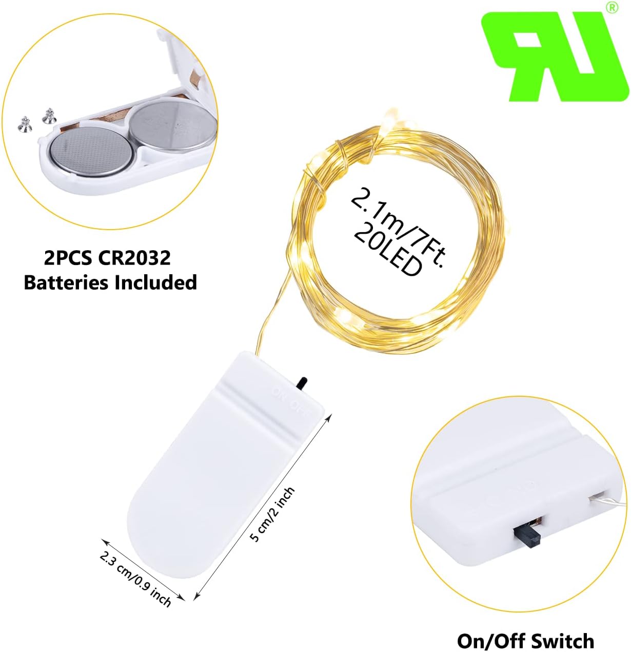 - Special Feature : 2 CR2032 Button Battery-powered, Bright Warm White Glow, Easy-to-twist Flexible 7ft Silver Wire, Energy Efficient, Safe to Touch, Waterproof 2 CR2032 Button Battery-powered, Bright Warm White Glow, Easy-to-twist Flexible 7ft Silver Wire, Energy Efficient, Safe to Touch, Waterproof