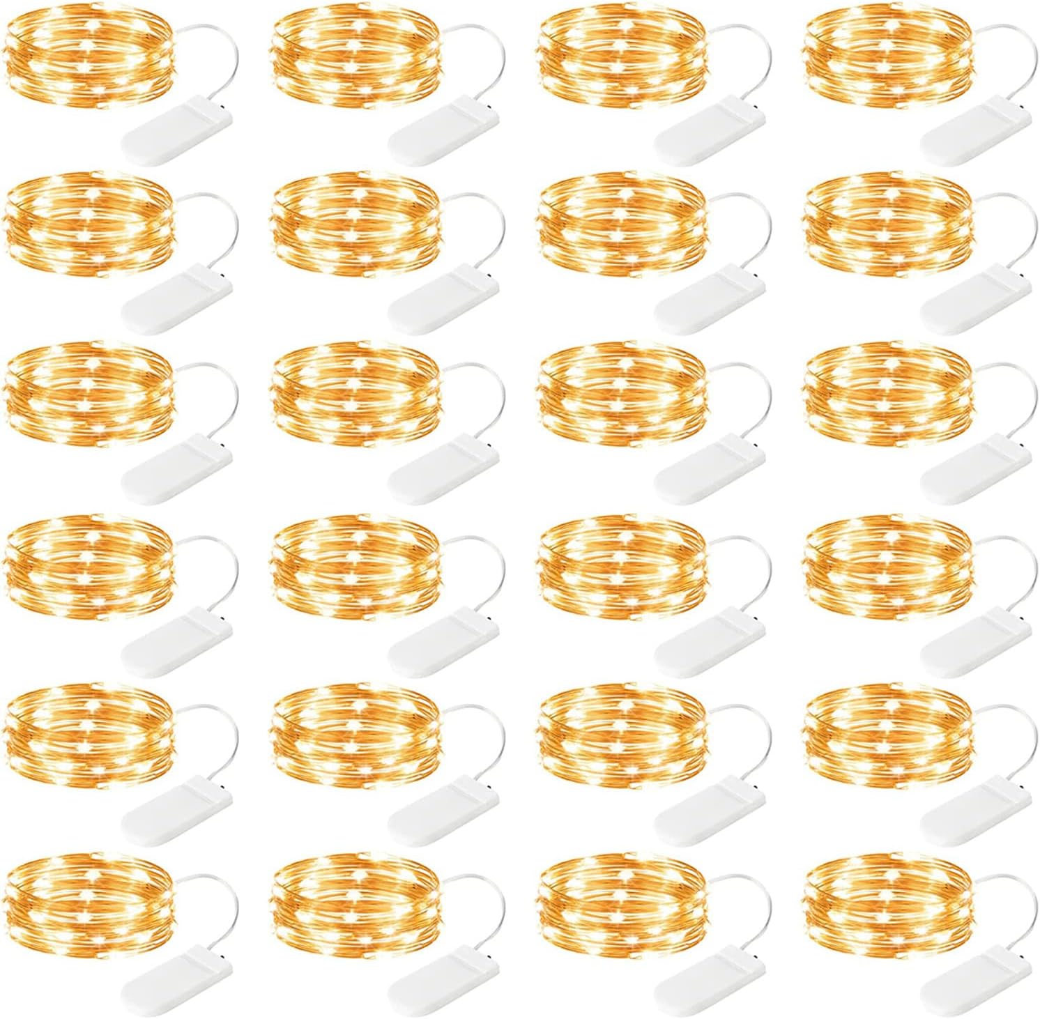 Brightown 24 Pack Fairy Lights Battery Operated String Lights - 7 ft 20 LED Mini String Lights Waterproof Silver Wire Firefly Lights for Vases Mason Jars DIY Crafts Plants Table Centerpieces Wedding