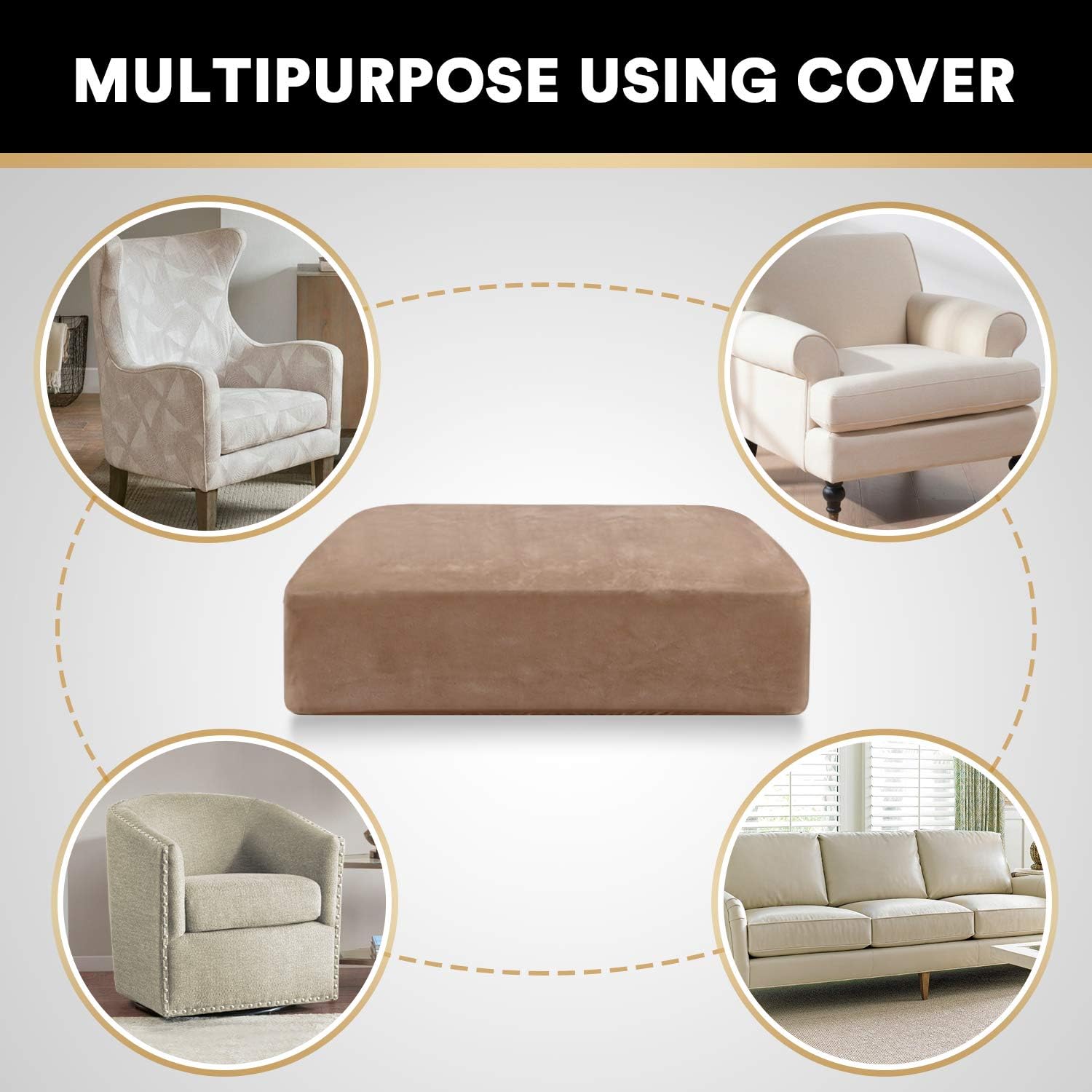 - PREMIUM VELVET:Crafted from real Velvet stretch fabric! Ultra soft, thick, cozy and durable,change with the seasons, and express your personality. Quickly and easily update your existing furniture. Accommodates a variety of shapes, surely fit both of T-cushions, Box cushions and L Shape cushion