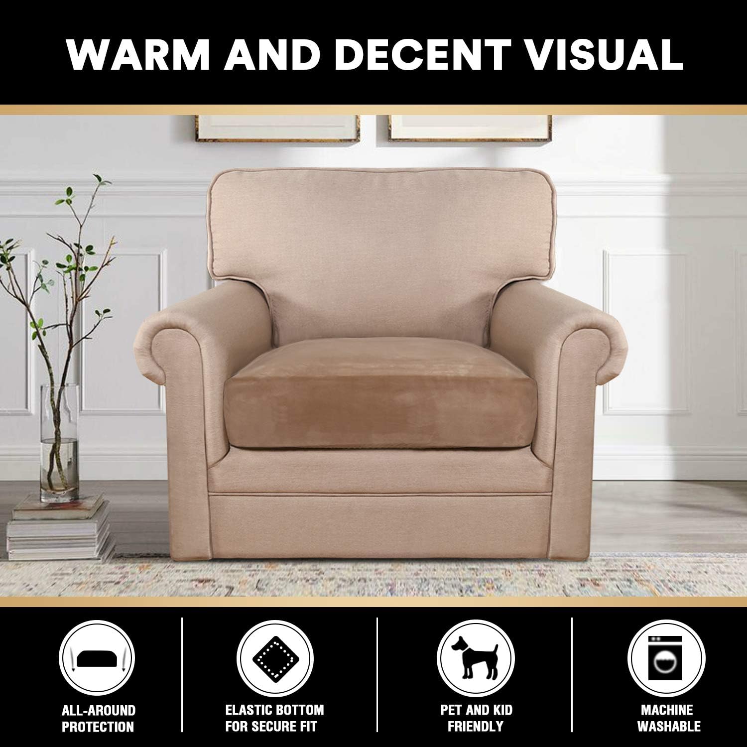 - PET FRIENDLY:Protect your cushion furniture from daily wears and tears, stains, scratches from pet claws, dogs or accidental spills. The antidote to the dust and dirt of everyday living. Perfect for messy kids and pets. Separate seat cushions require no re-tucking.