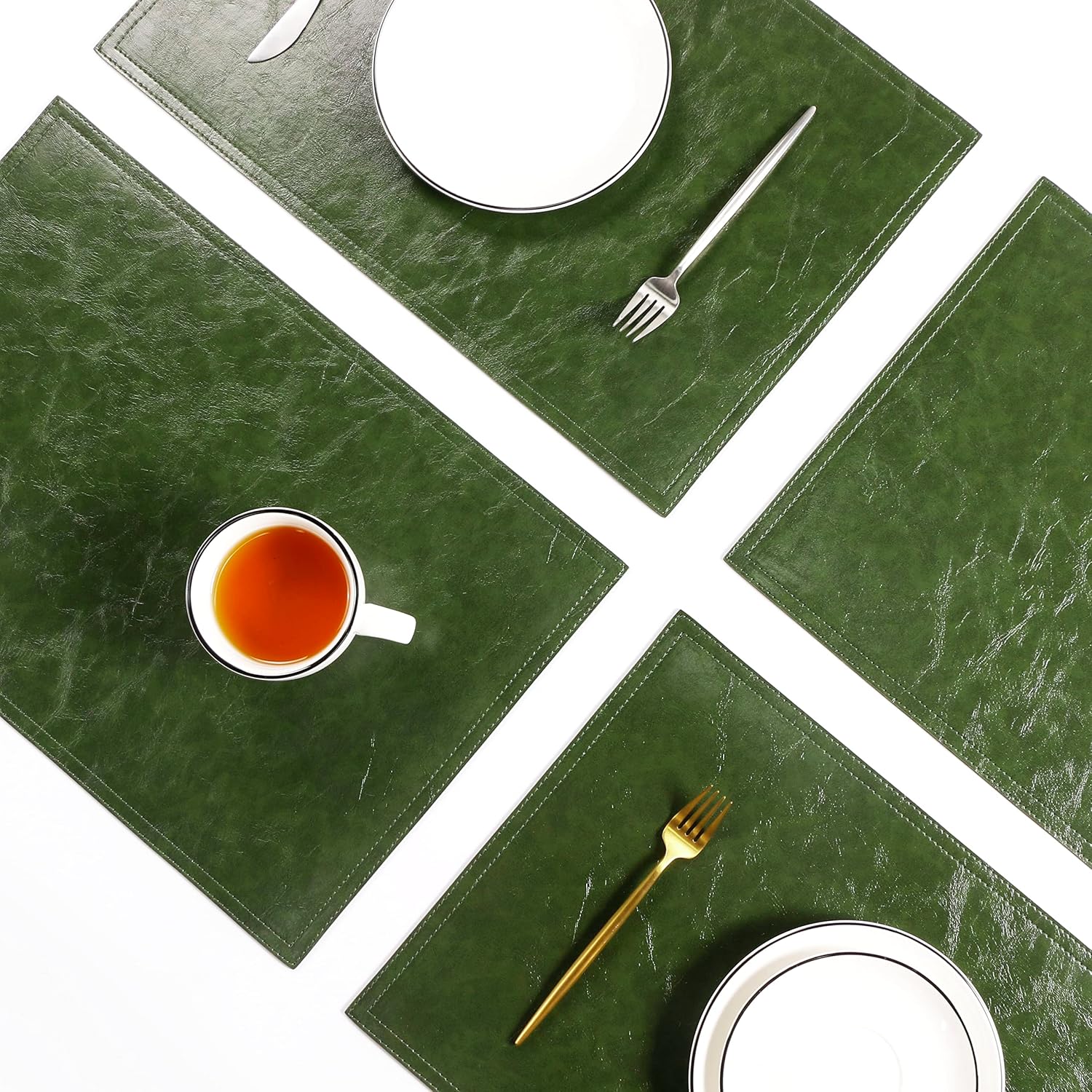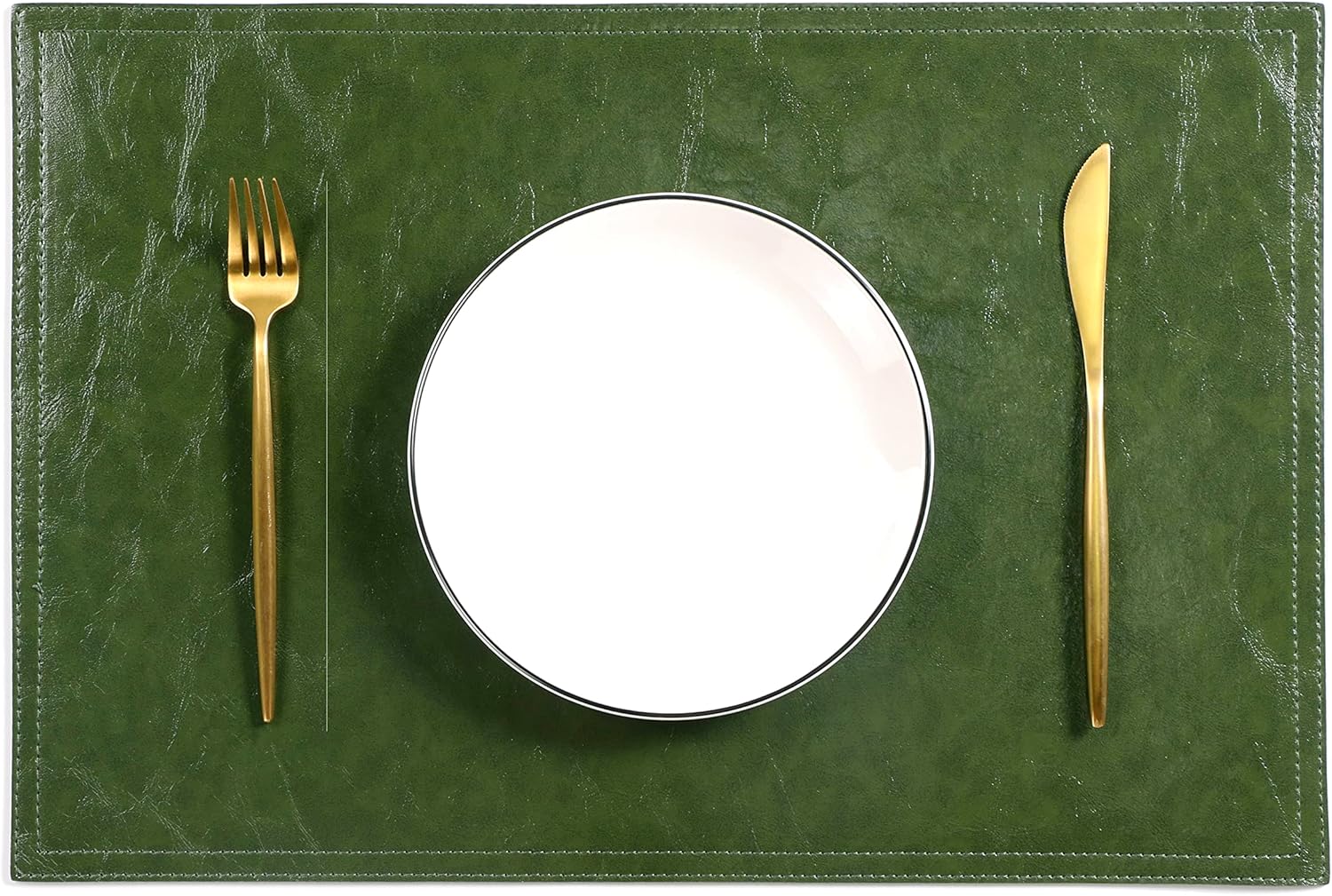 Waterproof PU Placemats, Faux Leather Dining Table Mat, Set of 4, Easy to Wipe Off Scrub Vinyl Mat, Heat & Stain Resistant for Office Conference Table, Home Decor