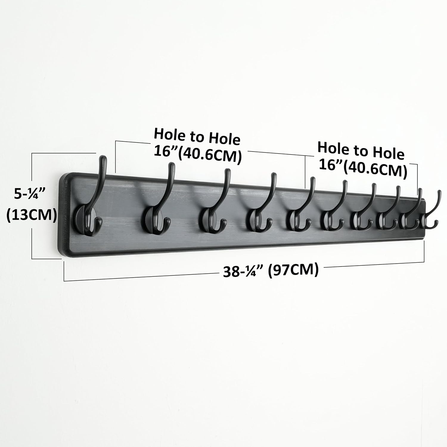 - 【38.3”LONG & HANG A LOT:】The wall hanger features 38.3”Long wood board with 10 dual hooks, looking impressively heavy duty, providing ample hanging space.