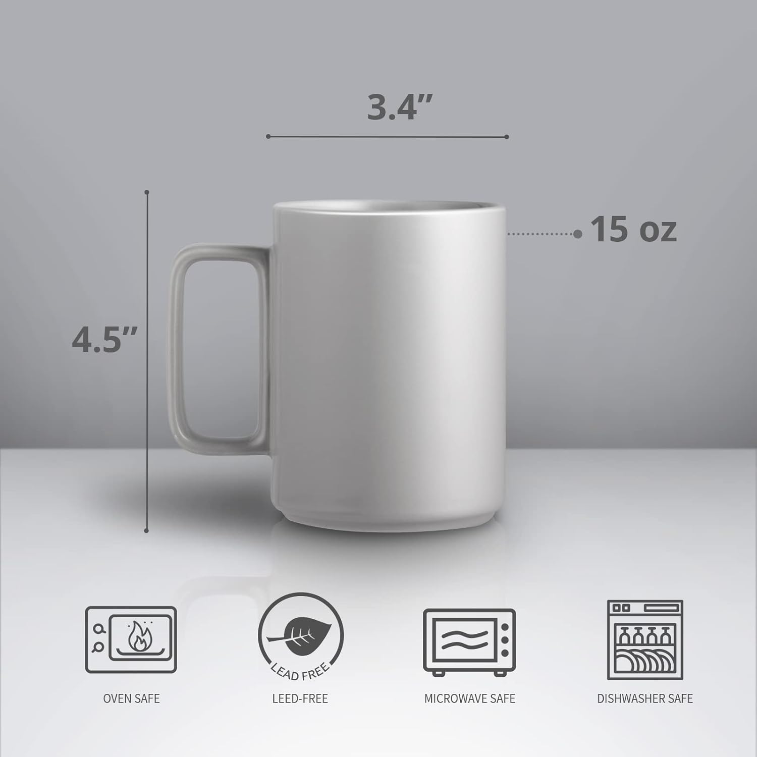 - Clean-lined design in black, white, grey porcelain is ideal for everyday enjoyment of your favorite hot pick-me-up. 15 Ounces capacity is perfect for tea, coffee or hot chocolate.