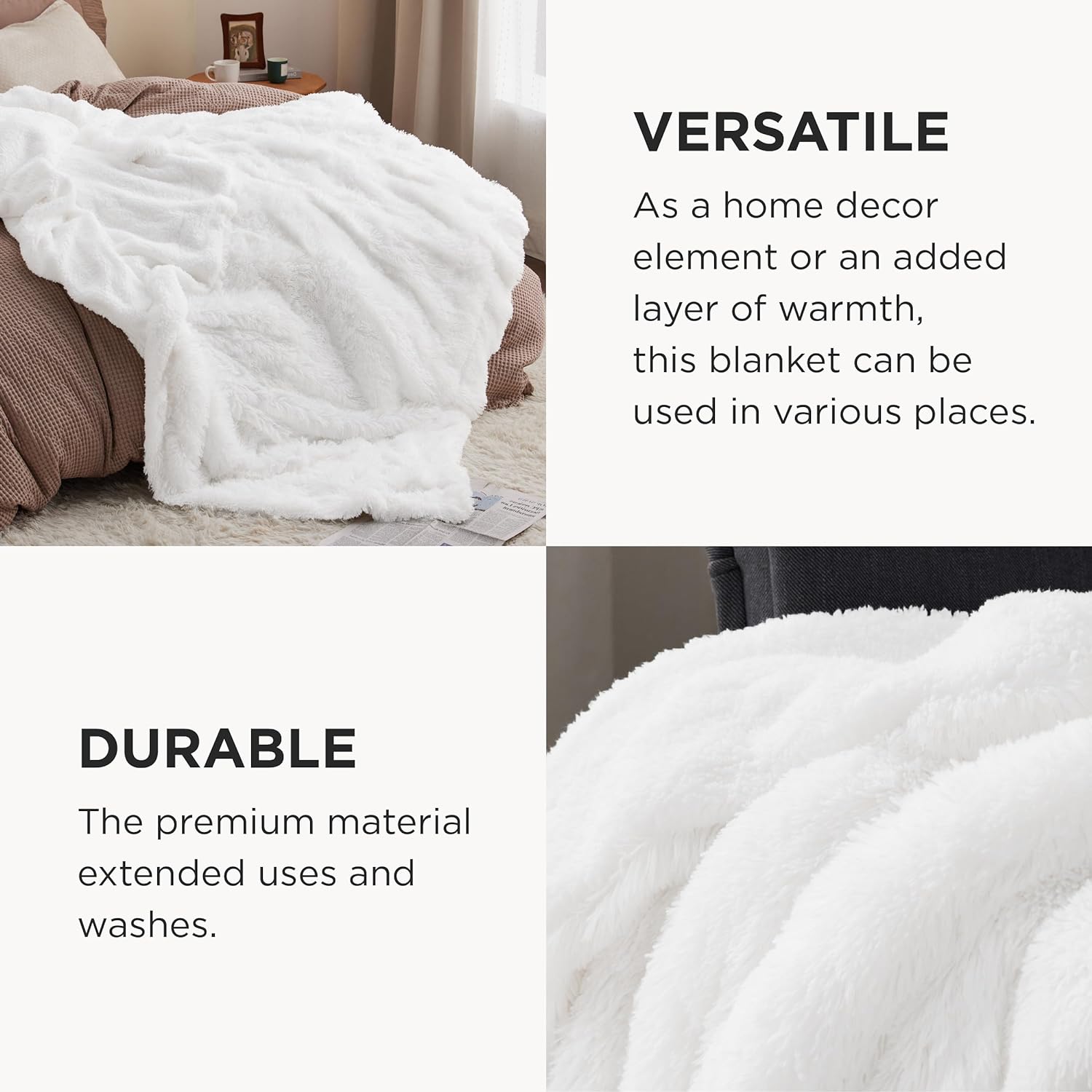Bedsure GentleSoft Fluffy White Blankets Queen Size for Bed, Thick Sherpa Faux Fur Fleece Fuzzy Plush Winter Warm Heavy Soft Queen Blankets, Bedroom Decor White Gifts Cozy Gifts for Women Men, 90x90