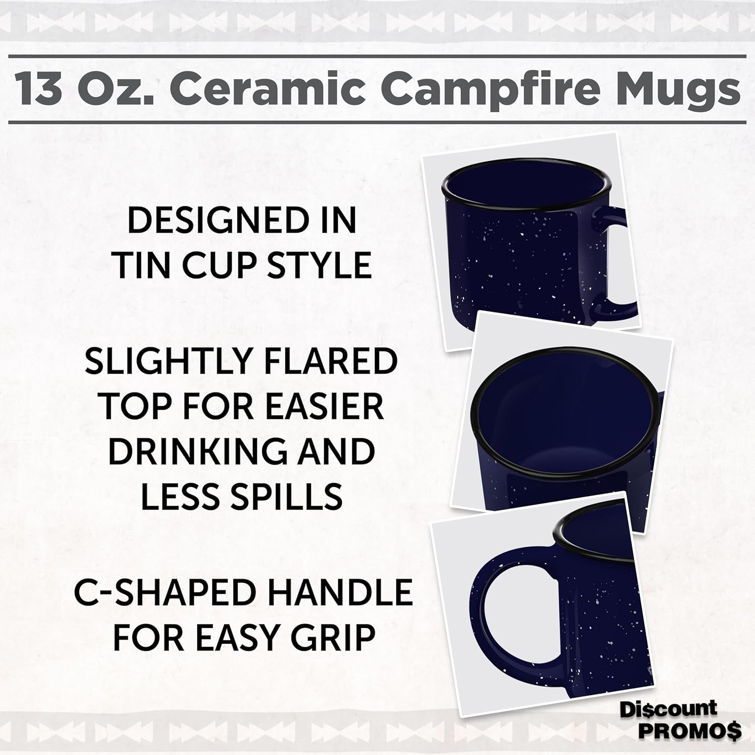 - DURABLE & COMFORTABLE DESIGN - 13-ounce Ceramic Campfire Coffee Mugs made of ceramic in the style of tin cups. Each ceramic coffee mug fits in your hand perfectly so you can enjoy your favorite hot or cold beverage. Plus, the slightly flared top makes for easy drinking and fewer spills.