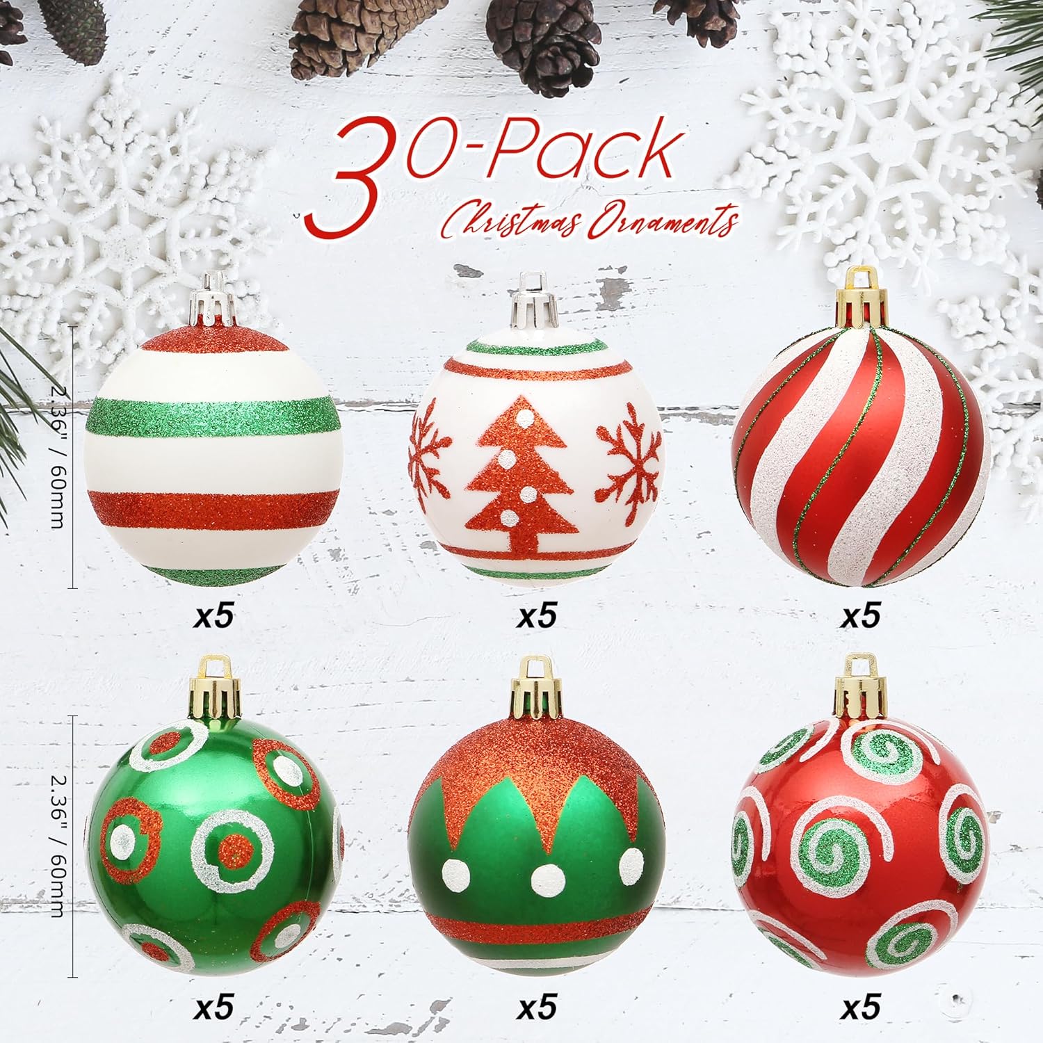 - 30 Christmas ornaments - one pack contains 30 Christmas ornaments that are enough to decorate a whole tree(tree height should be 3-6 feet)