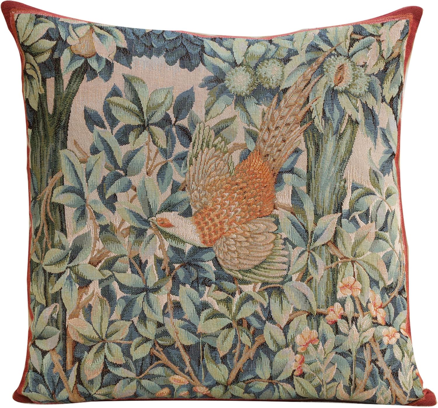 Charlotte Home Furnishings Decorative Tapestry Pillow Cover 19x19 in, Green Pheasant Couch Throw Pillow Cover, French Country Square Cushion Cases for Bed Room Home Decor, Soft Cotton Jacquard Woven