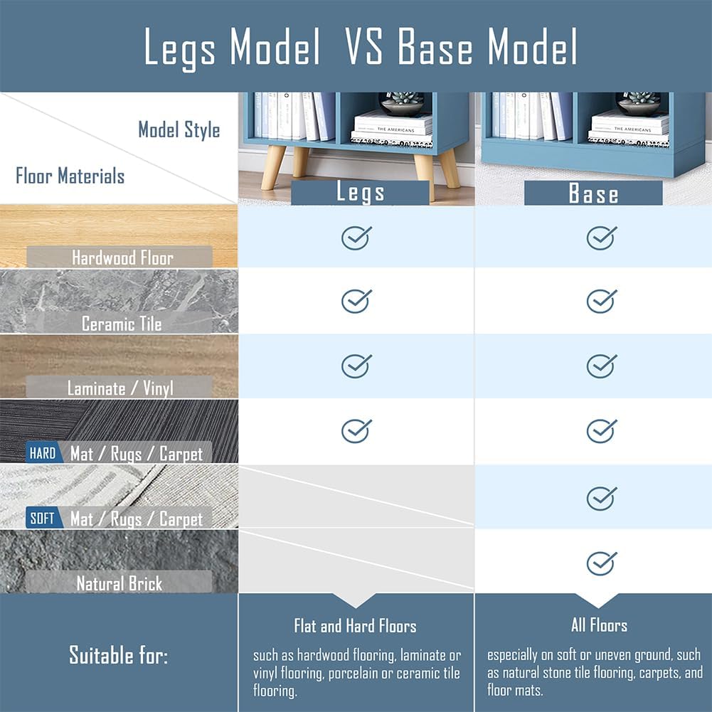 IOTXY Wooden Open Shelf Bookcase - 3-Tier Floor Standing Display Cabinet Rack with Legs, 5 Cubes Bookshelf, Bright Blue
