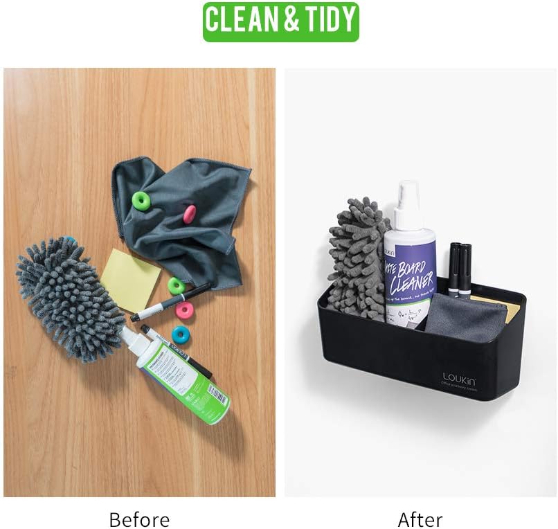 loukin Magnetic and Adhesive Marker Holder, Dry Erase Accessory Tray, Magnetic Storage Organizer for Whiteboard, Glass or Refrigerators (Black)