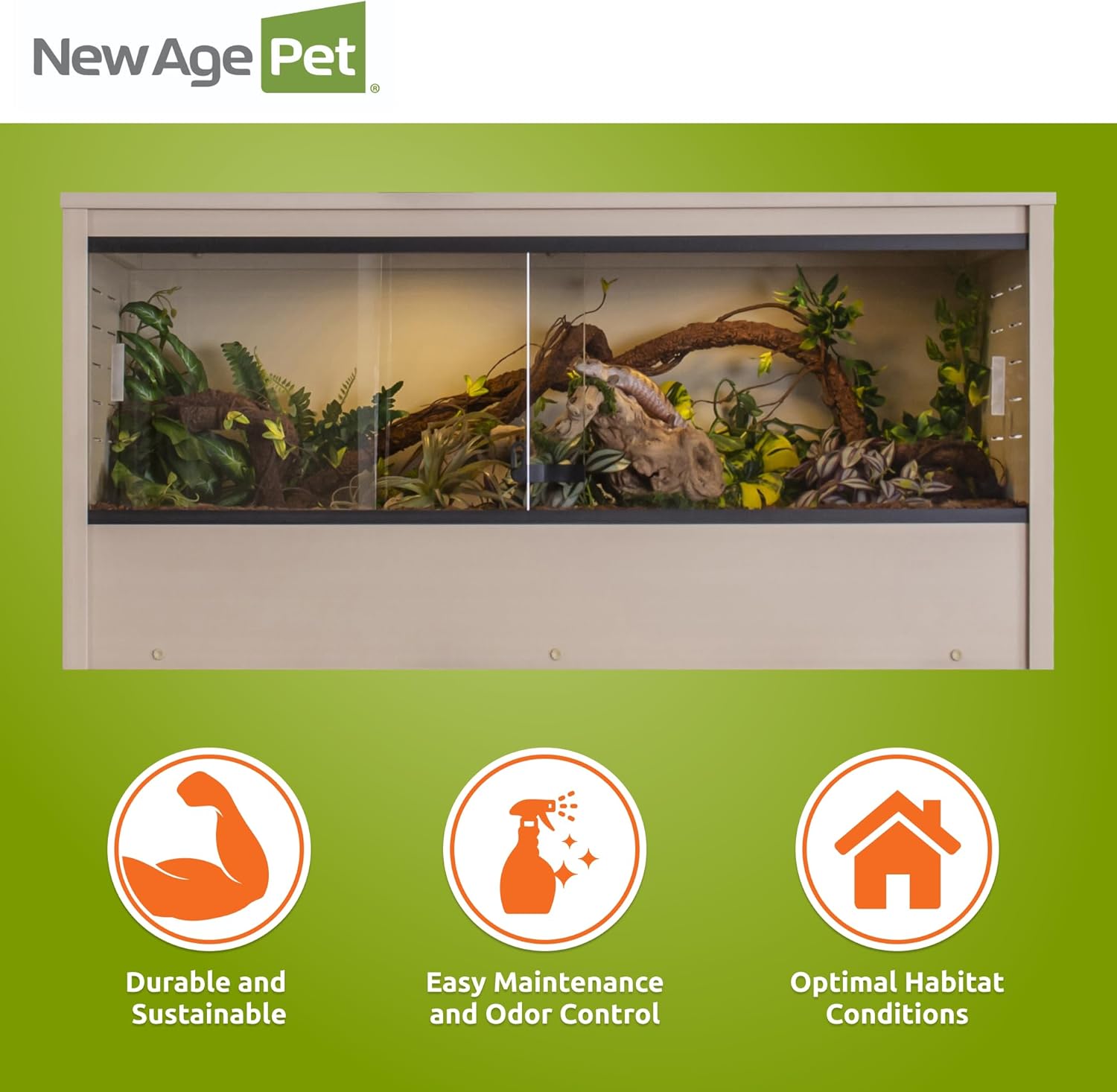 New Age Pet ECOFLEX 48" Mojave Reptile Lounge -Durable Wood Plastic Composite Habitat with Ventilation, Removable Glass Doors & Lock, Easy Assembly, for Tortoises, Snakes, Iguanas