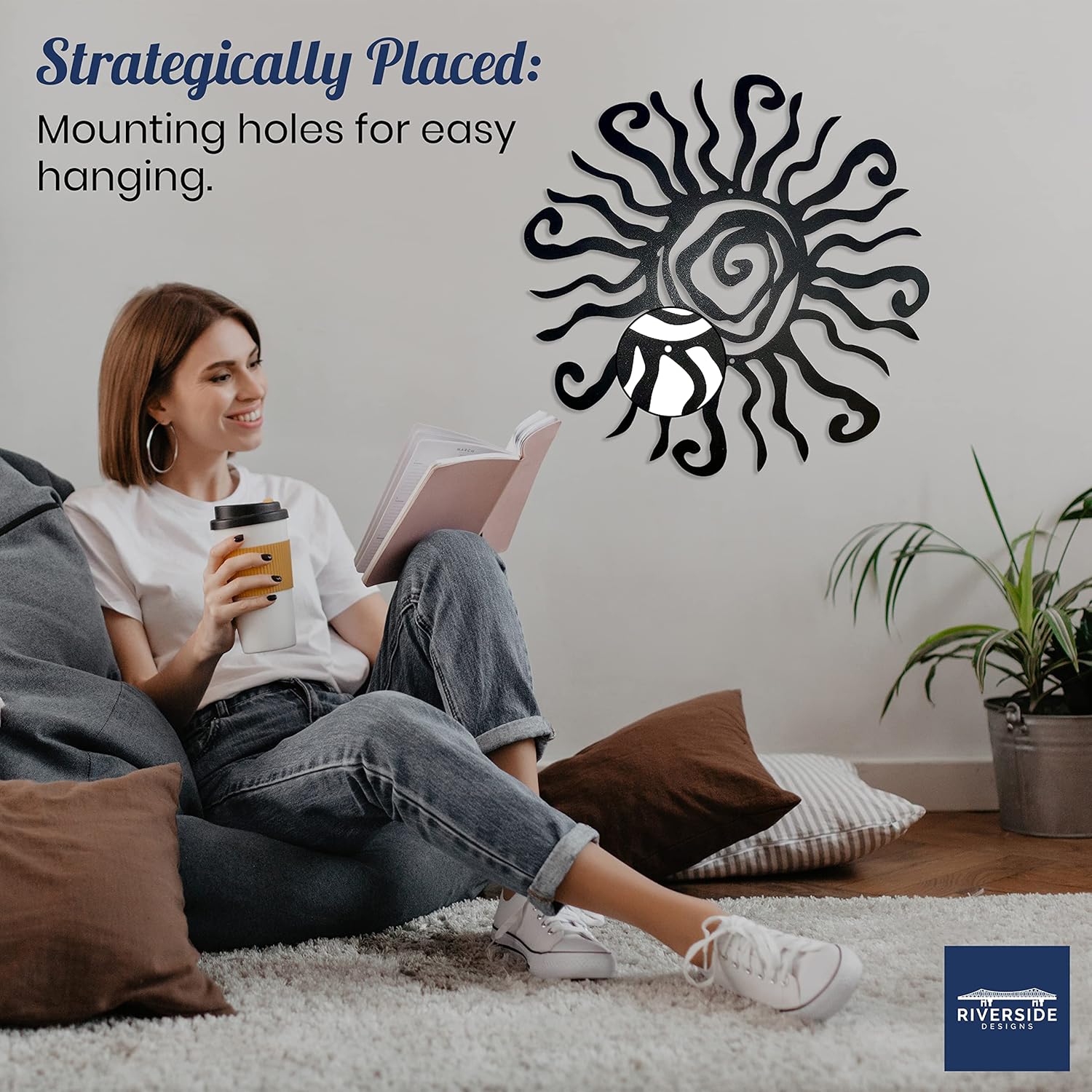 Riverside Designs Wacky Sun Metal Wall Art Indoor/Outdoor Decor - 12" Black Rust Proof Wall Sculpture - Made in USA - Ideal for Bedroom, Garden, Home, Patio and Farmhouse