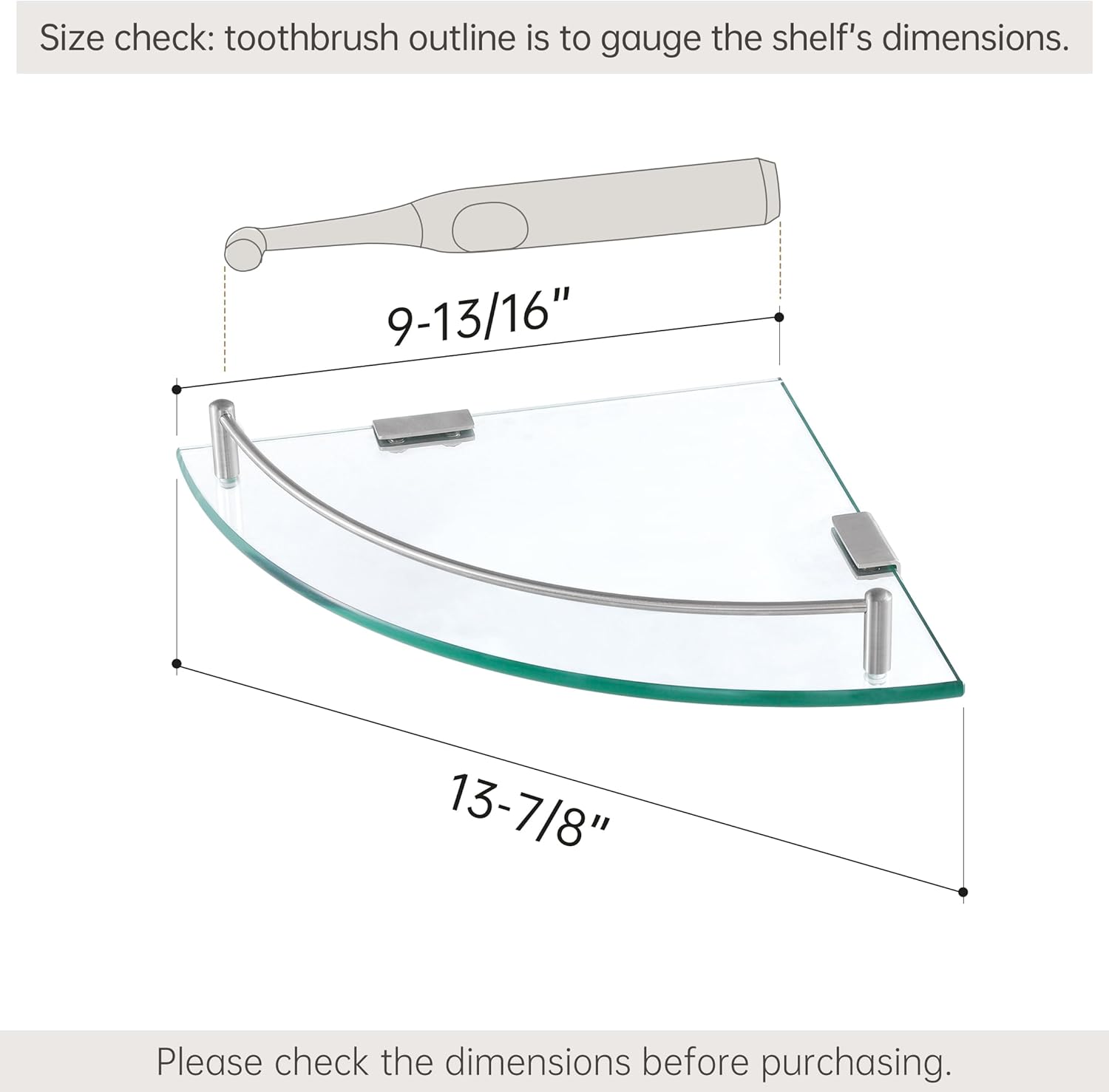 KES Glass Corner Shelf for Bathroom Corner Shelf 2 Pack Tempered Glass Shelf with Rail SUS 304 Stainless Steel Wall Mounted Brushed Finish, BGS2101A-2-P2