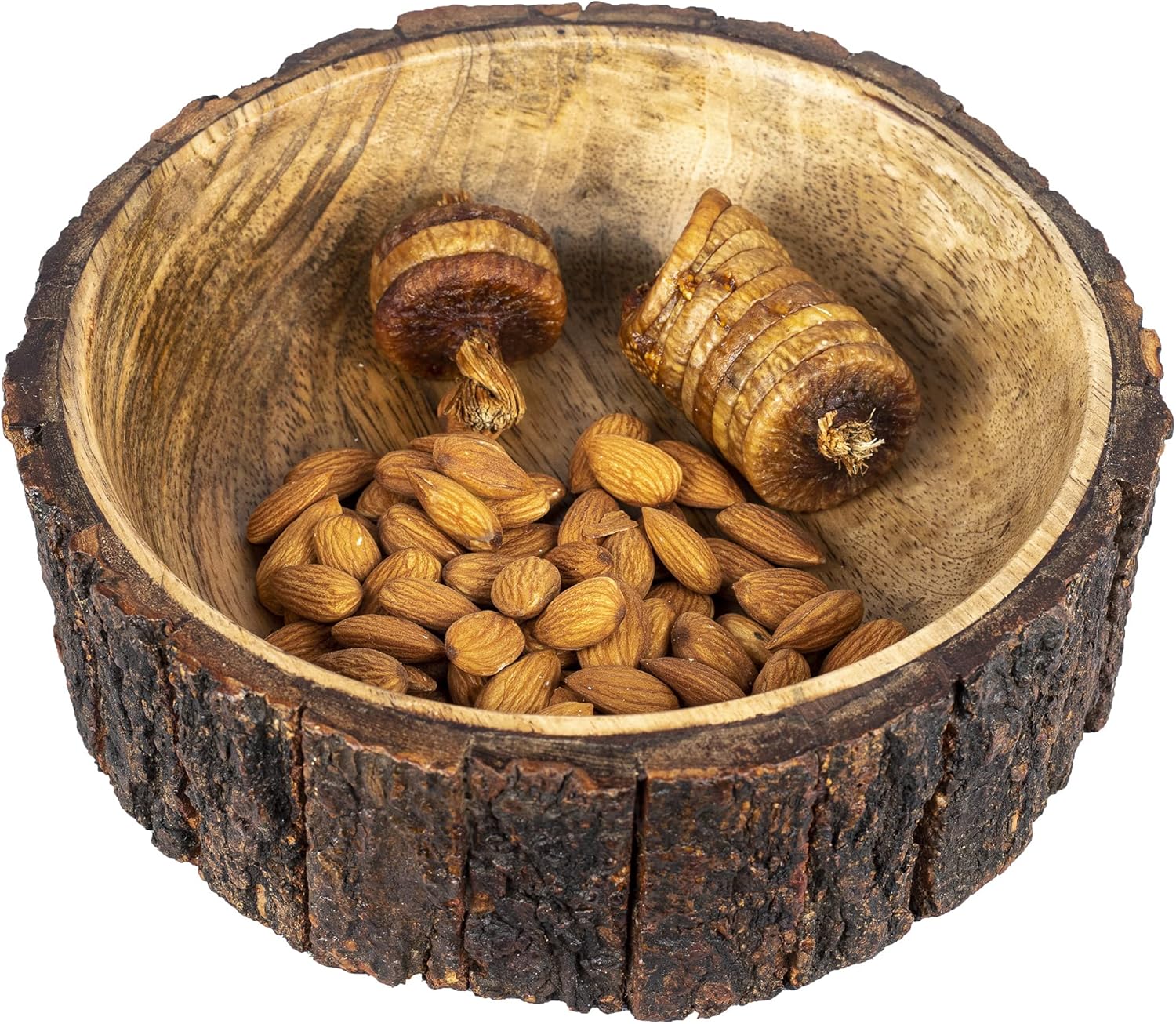 GoCraft Mango Wood Decorative Bowl with Tree Bark – 7.5" x 2.75" – Rustic Handmade Wooden Bowl for Potpourri, Snacks, Nuts, Salad – Natural Centerpiece for Table Décor