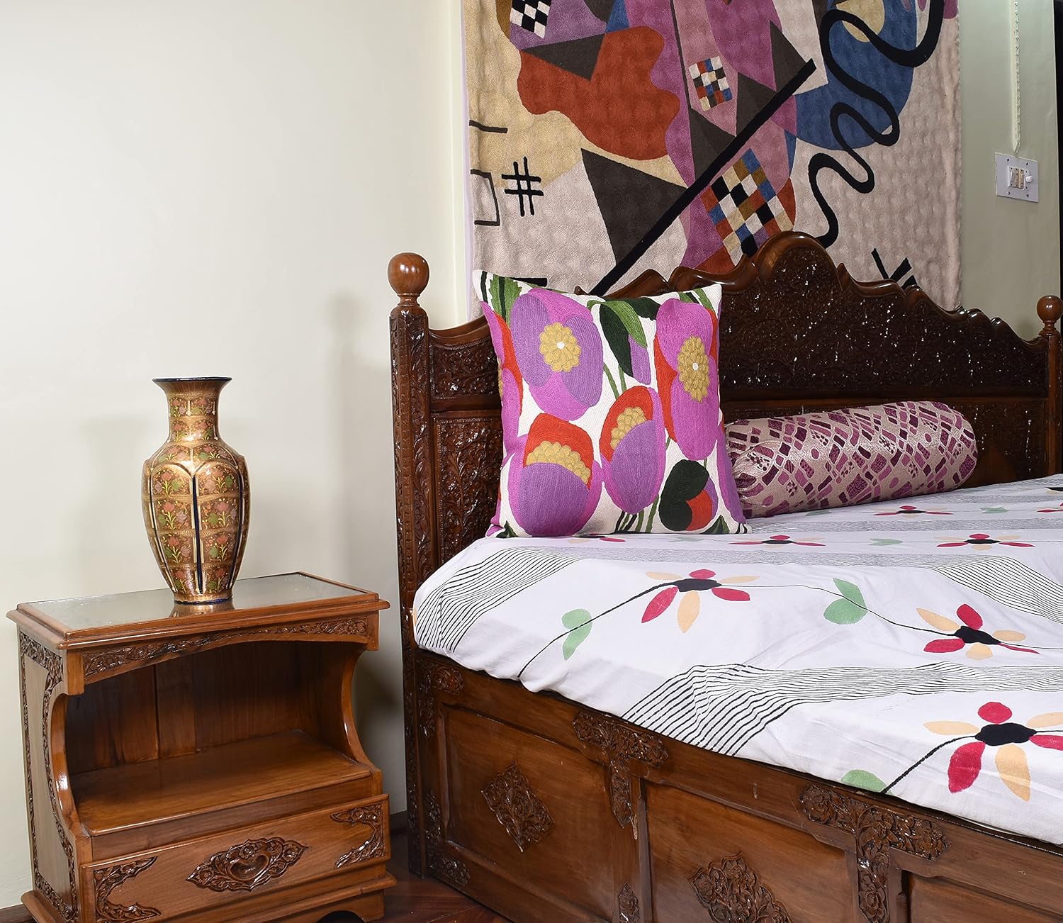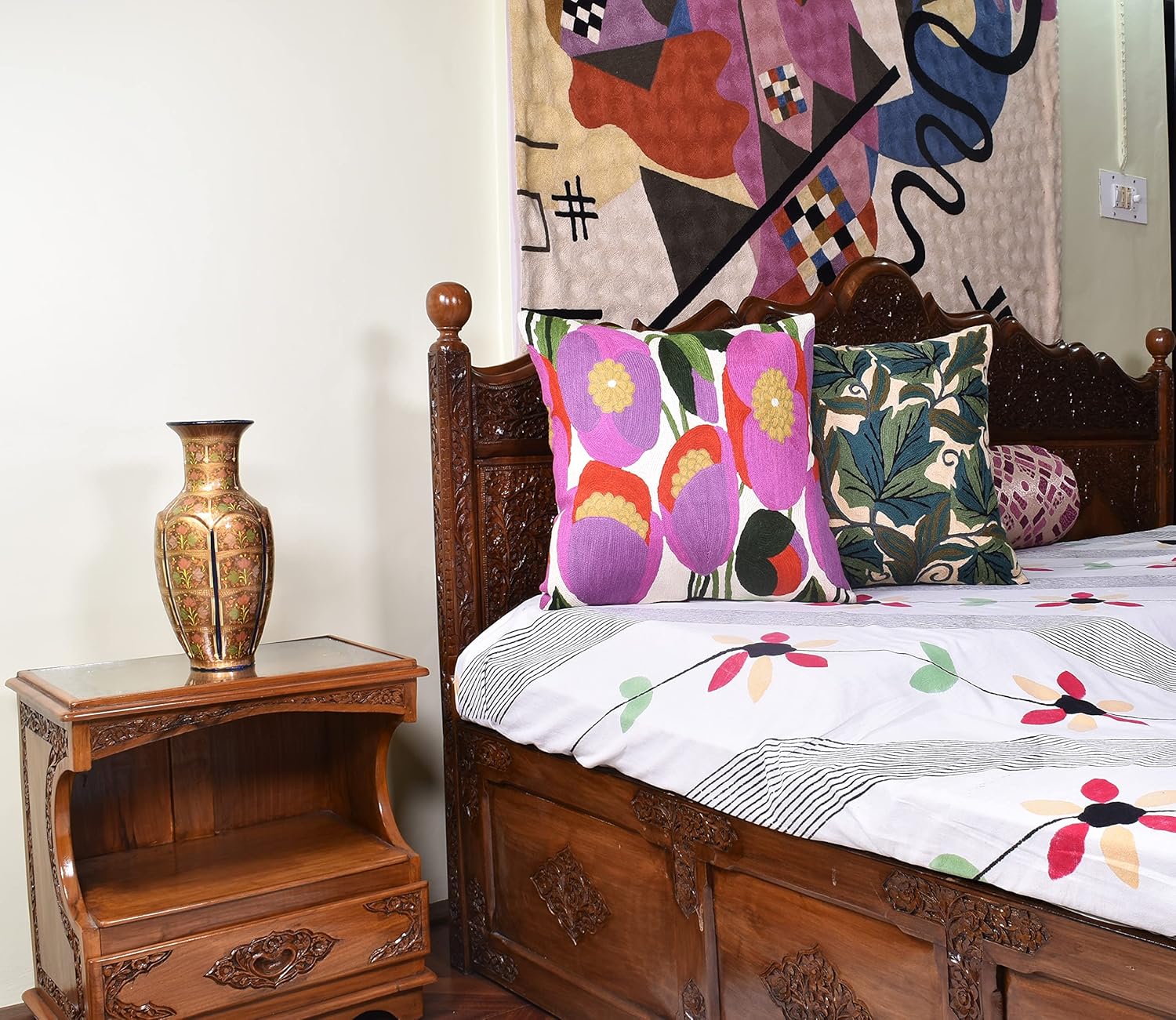 - 👍 FLORAL THROW PILLOW COVER - HAND EMBROIDERED: These colorful flower pillows are inspired from contemporary modern floral art designs and are hand embroidered in soft wool to perfection, stitch by stitch, by the finest artisans, creating an extraordinary all modern floral design pillow for your home decor. A close-up view of this all modern flower cushions allows you to see the amazing fine chain-stitch hand embroidery that covers the whole front side of this floral pillowcase.