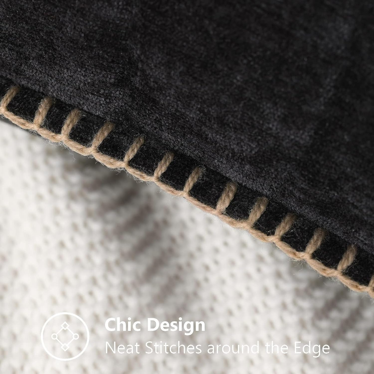 decorUhome Chenille Soft Throw Pillow Covers 26x26 Set of 2, Farmhouse Velvet Neutral Decorative Euro Pillow Covers with Stitched Edge for Couch Sofa Bed Home Decor, Black