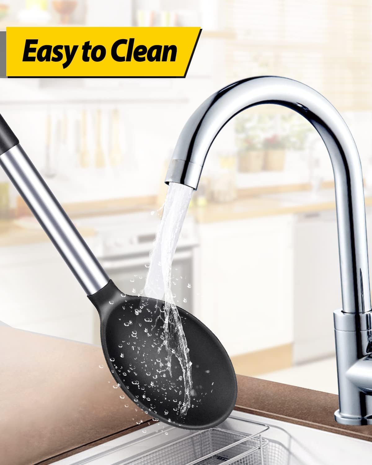 - More Safe and Healthy : Our silicone spoons are made of food-grade silicone, free of BPA;Even at high temperatures, there is no need to worry about melting or deforming;And the soft silicone head won't scratch the coating, it can better protect your pot